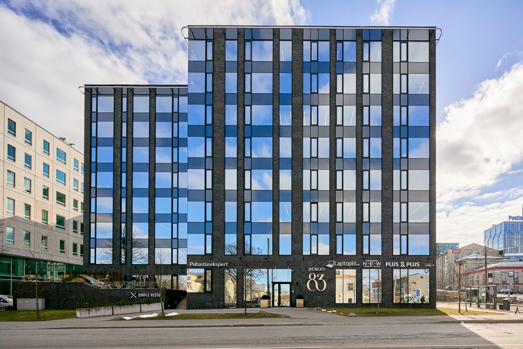 Büroo83 is an 8-storey contemporary commercial building completed in 2016, known for its striking architecture and high reputation in the area. The building’s architect is Raivo Kotov (KOKO architects). The ground floor houses an elegant lobby with a receptionist, several retail spaces, and the popular restaurant Fredo. Office spaces are located on the 2nd–8th floors and are equipped with modern technical systems and conveniences.