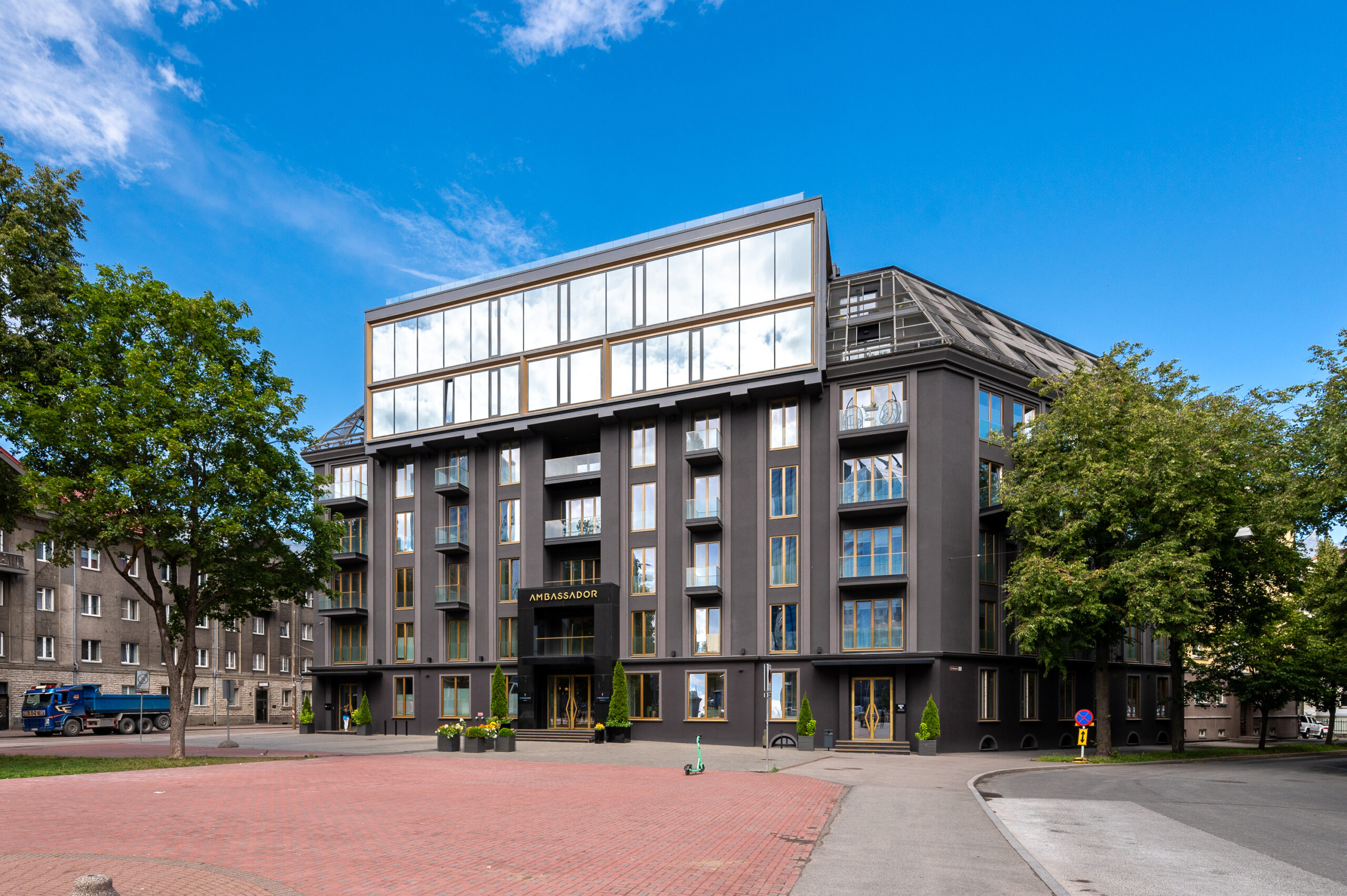 The ultimate goal of the Ambassador building is to create a living environment for its residents that takes their needs into account down to the smallest detail and ensures a high-quality indoor climate. The elegant and inviting interior of the building, which combines modern and historical architecture, and its proximity to the sea and the Old Town create the perfect living environment.