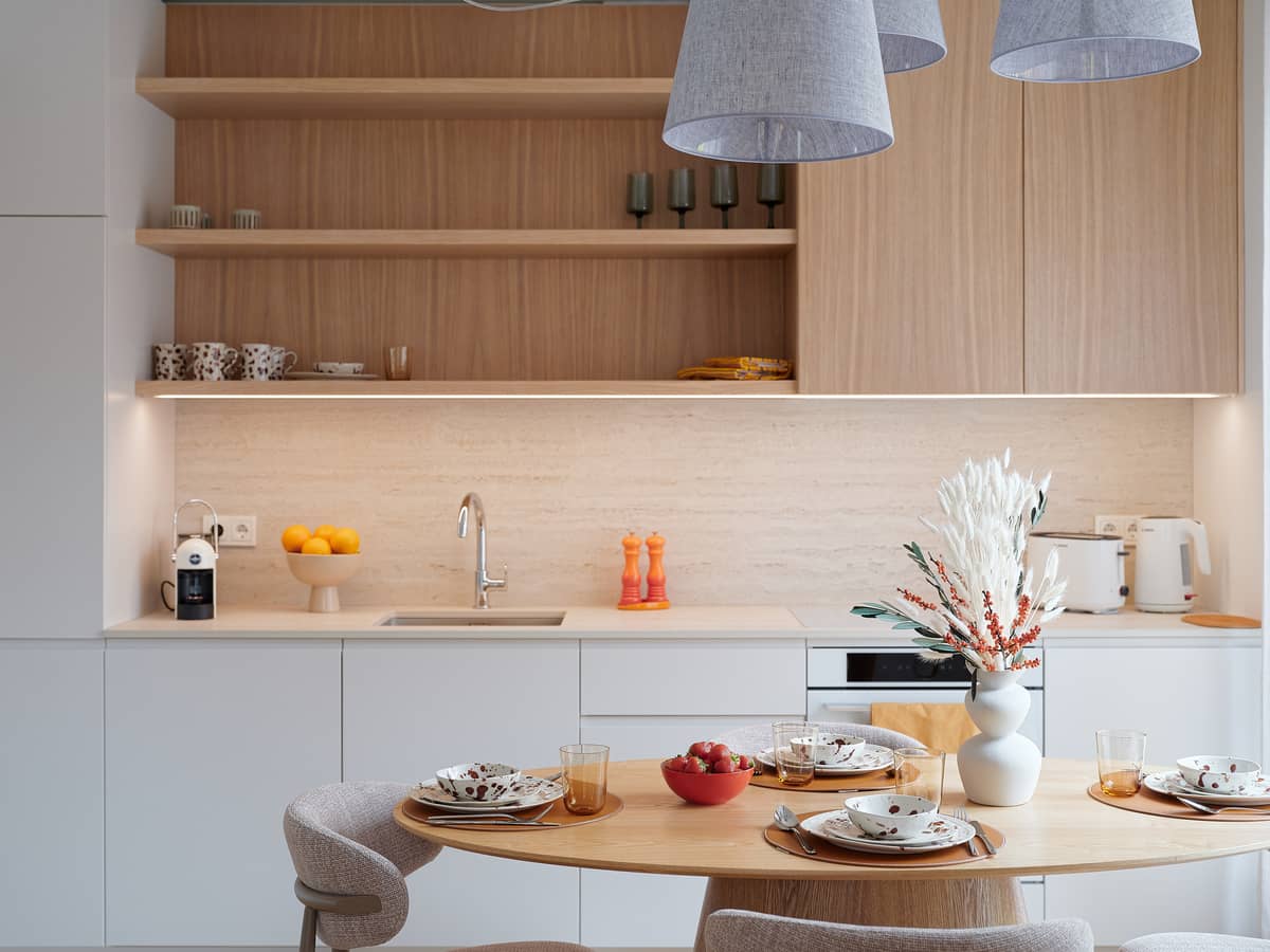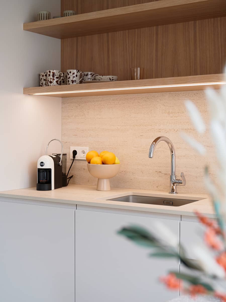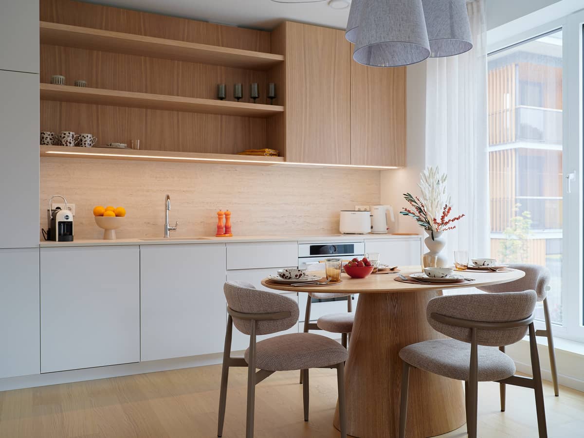 The apartment’s interior design was created by interior architect Lilia Kristianson, resulting in a timeless, elegant, and functional living space where every detail has been carefully considered.