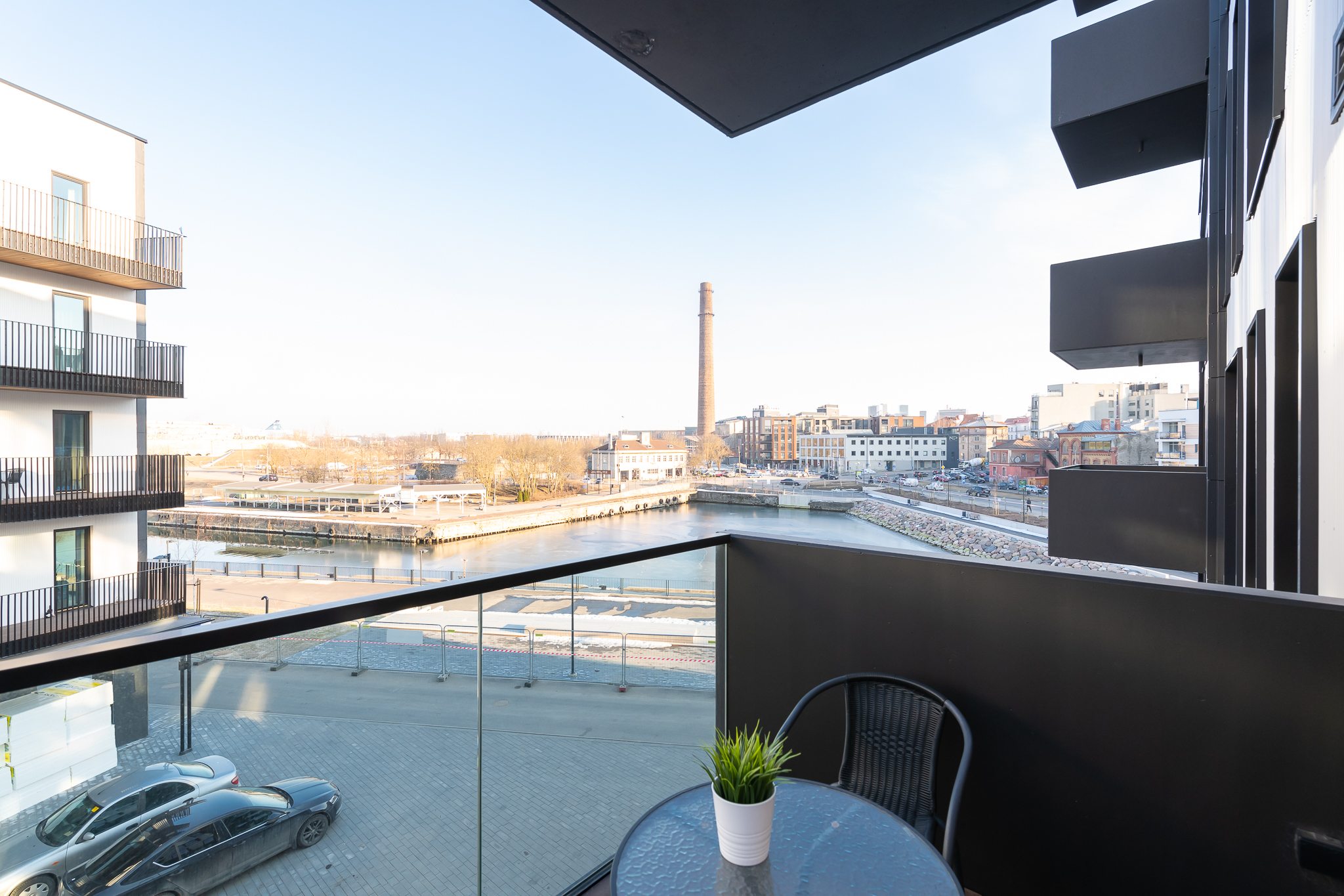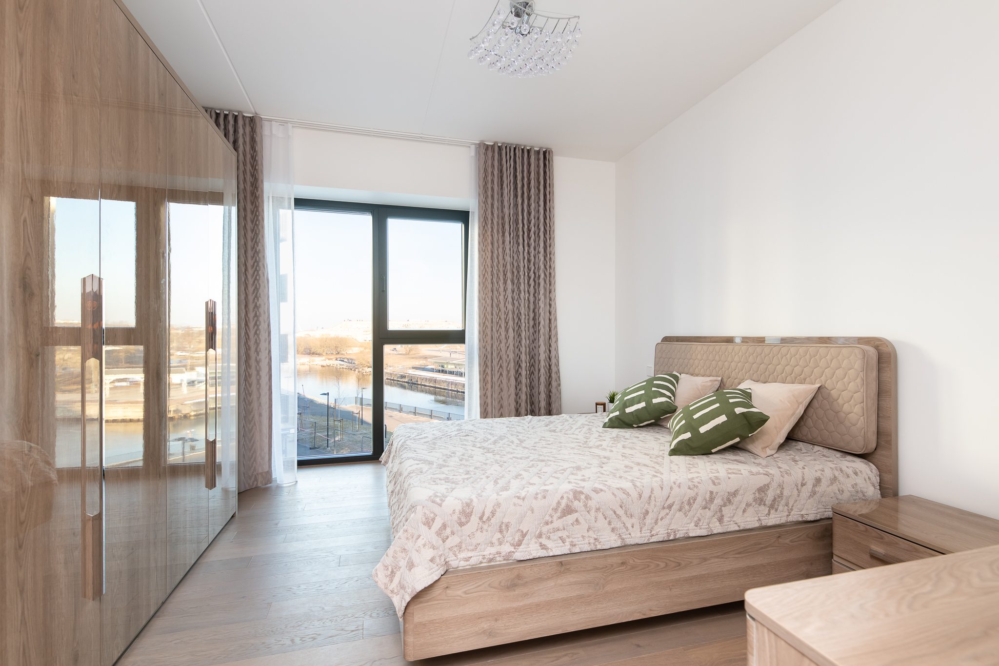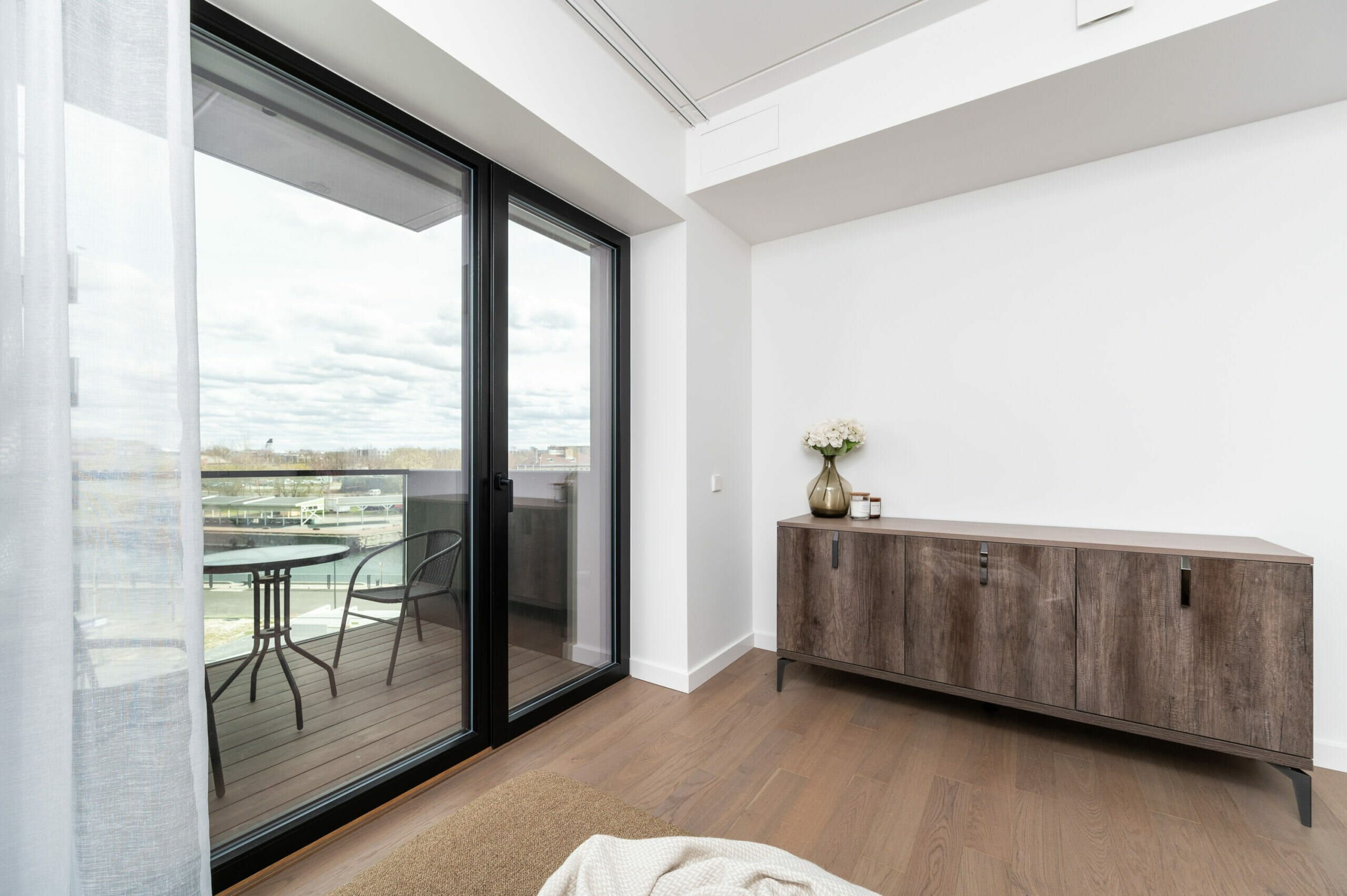 79.6 m2 consists of: 2 bedrooms, kitchen-living room with a 4.7 square meter balcony, bathroom, guest toilet, utility room, hallway and corridor. The bedroom window offers a beautiful view of the marina and the beach promenade in front of the apartment building. These are modern solutions, an open plan and a bright home with clean lines, natural materials and a bright and modern finish. In the living rooms, the floors have dark oak parquet; ceramic tiles in the toilet and bathrooms. The windows and balcony doors of the apartments are made of wood-aluminum construction and have triple glazing.
