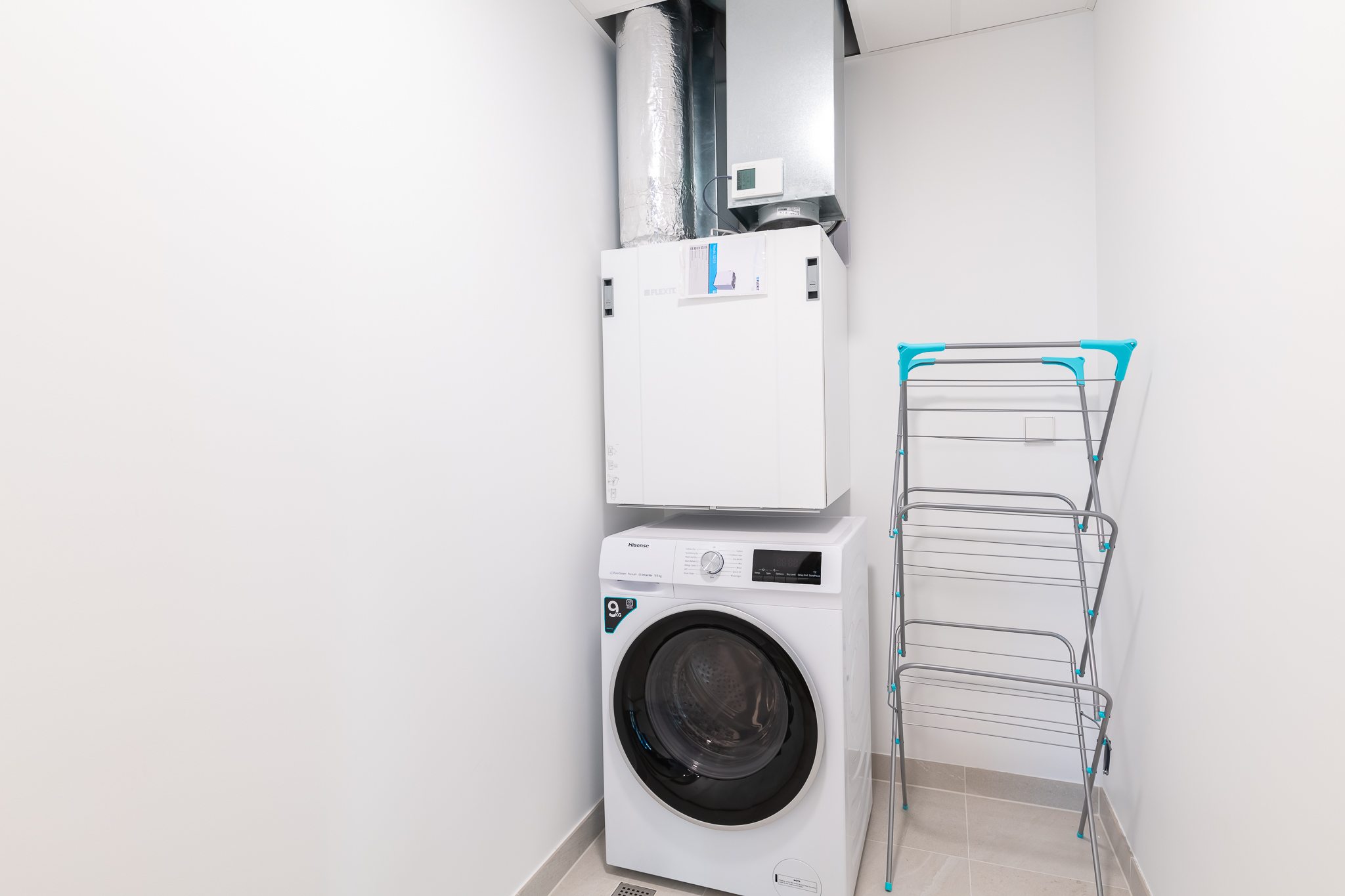 The apartment building is connected to the Tallinn Heating district heating system. The apartments have underfloor heating, which can be regulated on a room basis. The energy label for buildings is B. The air exchange in the apartments takes place through an apartment-based heat recovery ventilation unit. The apartment owner has the opportunity to adjust the intensity of ventilation. Fresh air is supplied to the living rooms and bedrooms, and air is extracted through the plumbing rooms, hallway and kitchen area. The apartment has a Telia optical cable.
