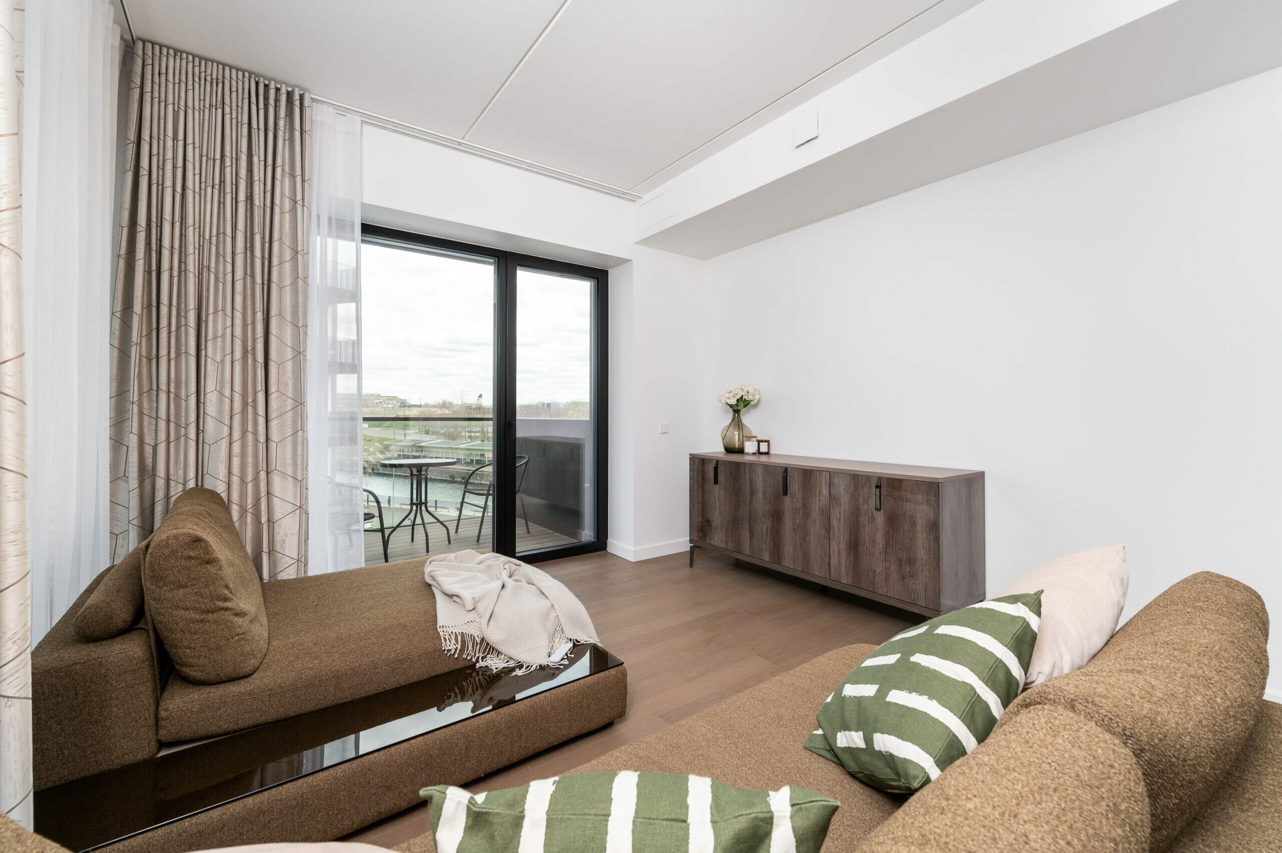 3-room apartment with a view of the basin of Kalasadam for rent in the Kalaranna quarter, where elegant architecture and inviting interior meet. Proximity to the sea and the old town create a perfect living environment. It is a unique home for a person who enjoys modern architecture and a well-thought-out living environment, values quality and values time, while looking to the distance to let the thought travel.