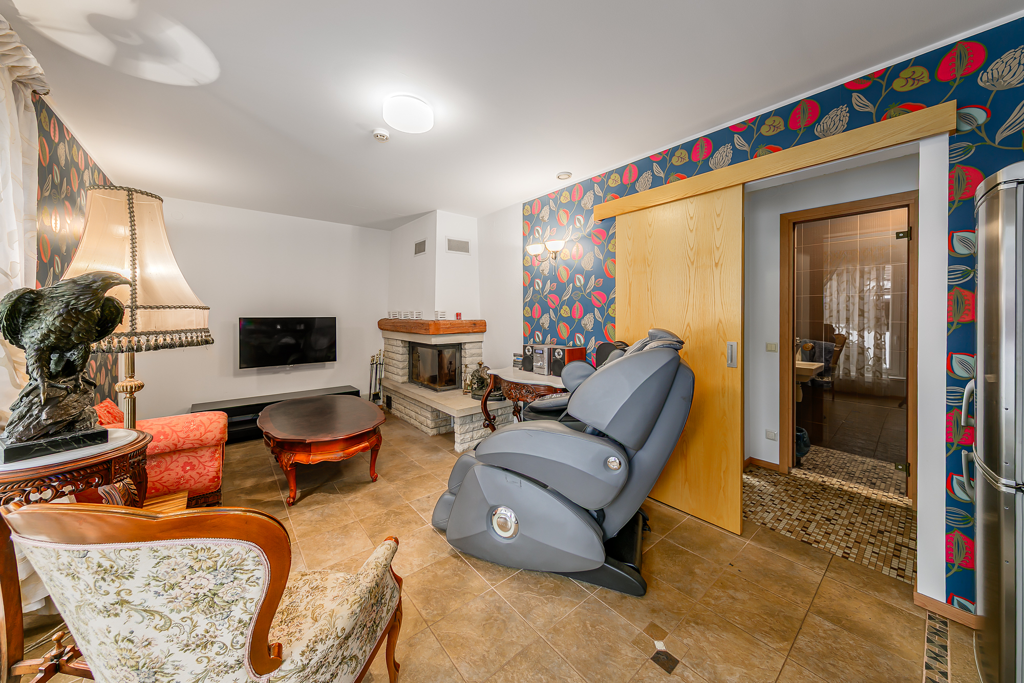 In addition to the geothermal heating system, the granite and marble fireplace in the living room creates a cosy atmosphere and provides an additional heat source during colder periods.