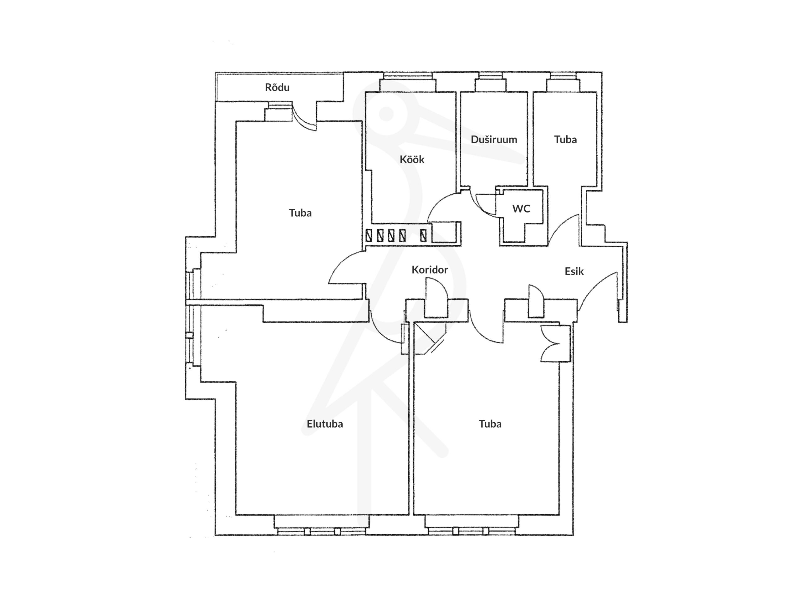 This 3-room apartment in a five-storey building consists of a spacious living room, a master bedroom with a 2.2 m² balcony, a bedroom/study, a separate kitchen, bathroom, WC, and an entrance hall. The master bedroom overlooks the enclosed courtyard. The entrance hall includes a walk-in wardrobe, which functions as an additional room and can also be used as a fourth bedroom if desired. According to the Estonian Building Register, the apartment is officially registered as a four-room unit.