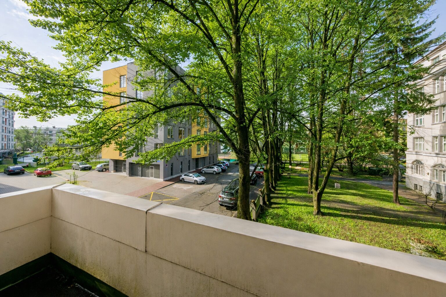 A spacious apartment with a balcony, parking space, and a 20 m² storage room on a quiet street in the city center.