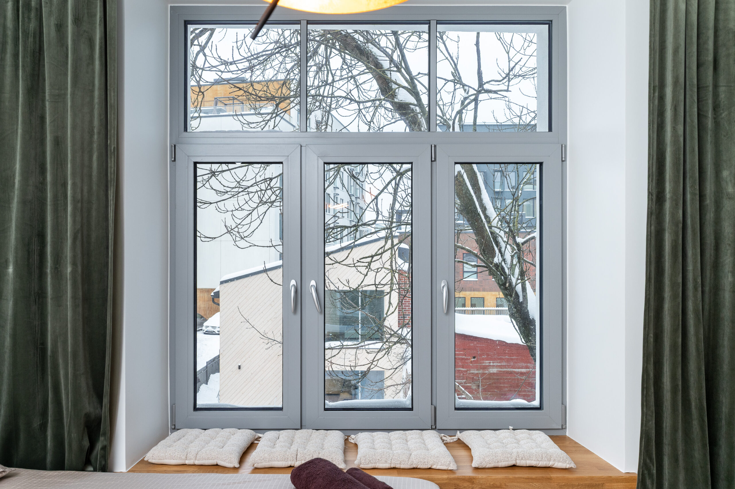 There are two entrances – one from Tartu Road and another from the courtyard, facing Odra Street. The structure is built from limestone and red brick. The roof is made from standing seam sheet metal on a wooden framework. While life in the city center is always buzzing, the thick walls and soundproof windows ensure peace and quiet inside your home. The apartments feature Rw = 45 dB soundproof windows with an average U-value of 0.9 W/m²K. The exterior doors are solid wood, manufactured by Haapsalu Uksetehas.