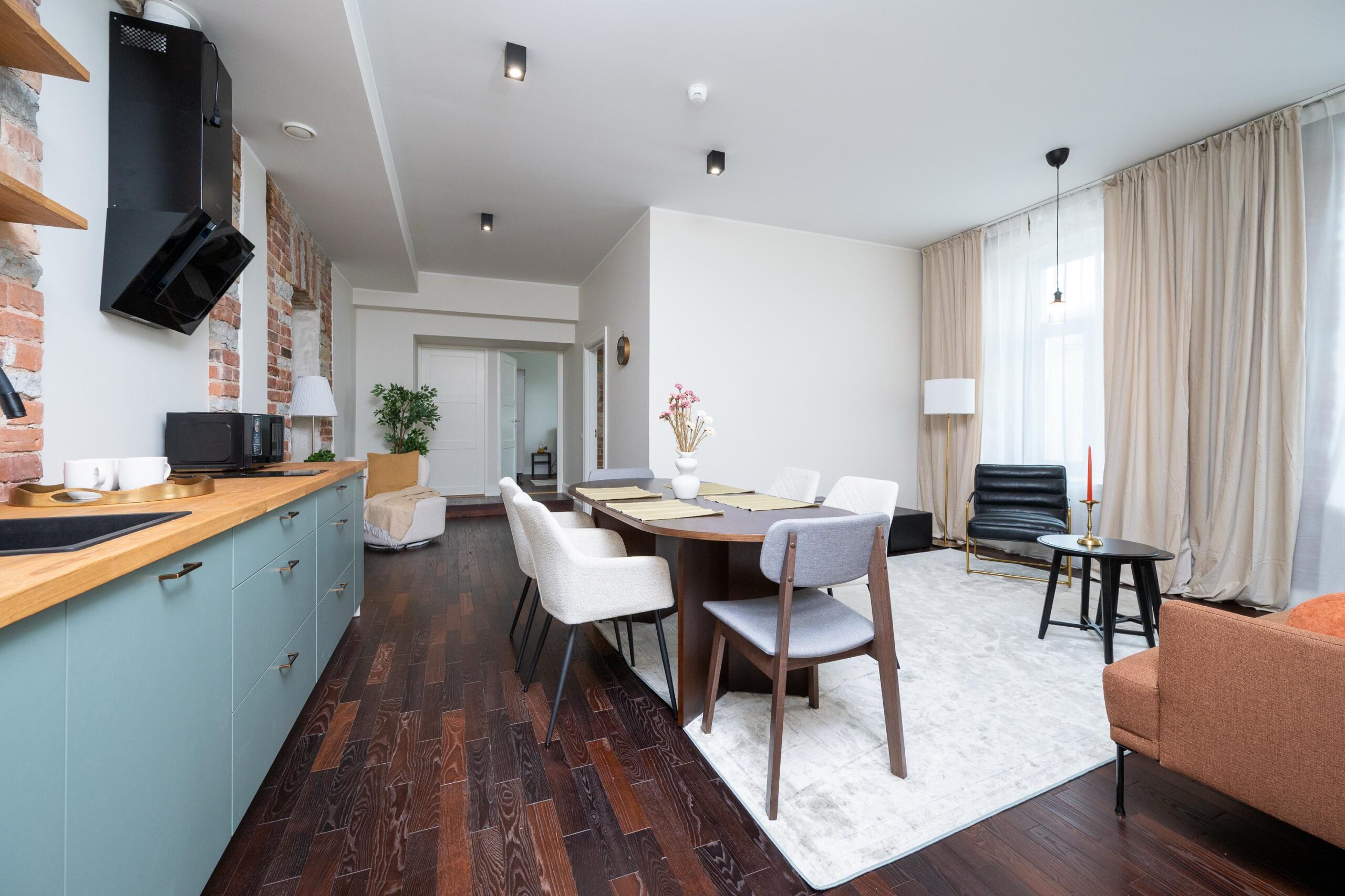 This is a classic city centre residential building with a history dating back to the early 20th century. Period features such as thick stone walls and high ceilings have been preserved and combined with modern finishes and technical systems.