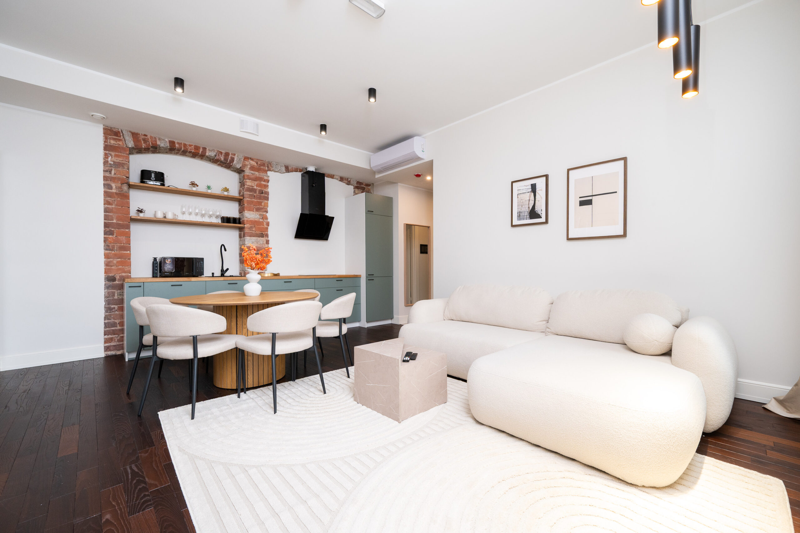 The interiors feature natural tones and timeless design, creating a calm and уют overall impression. Many apartments retain or highlight original elements such as exposed brick walls and high ceilings, adding character and value. High-quality materials have been used throughout, ensuring durability and long-term visual appeal.
