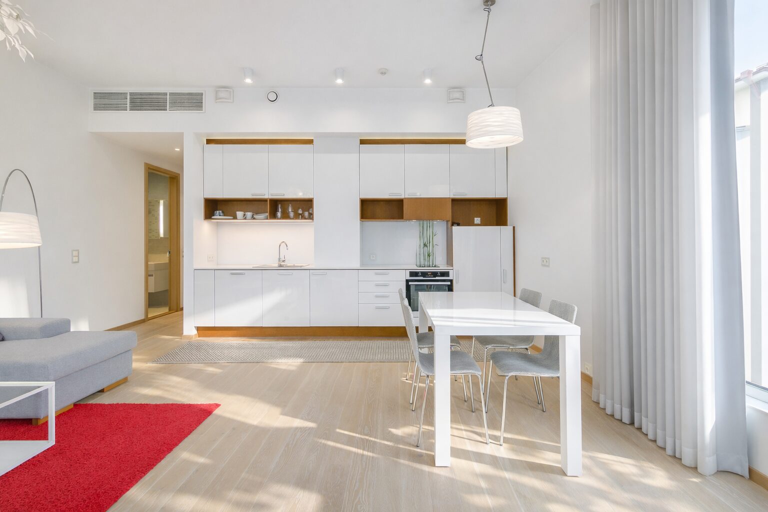 Korteri siseviimistlus annab edasi karget ja põhjamaist tunnetust – eeskuju on võetud skandinaavialikust sisekujundustraditsioonist.