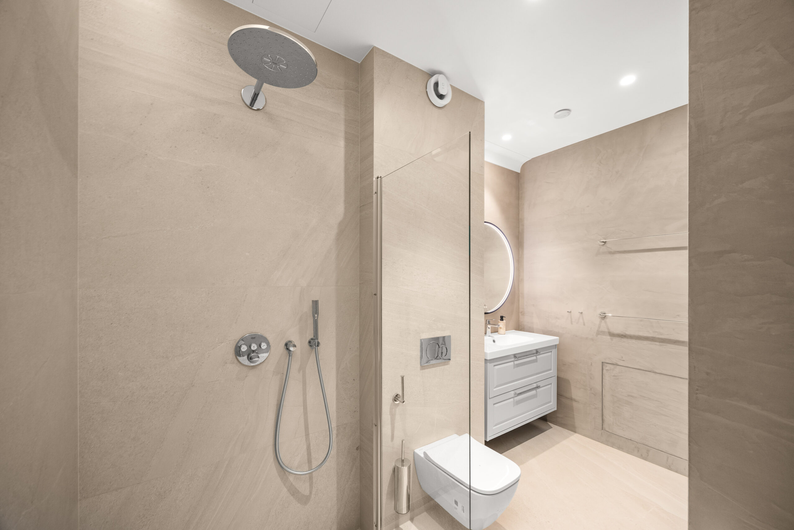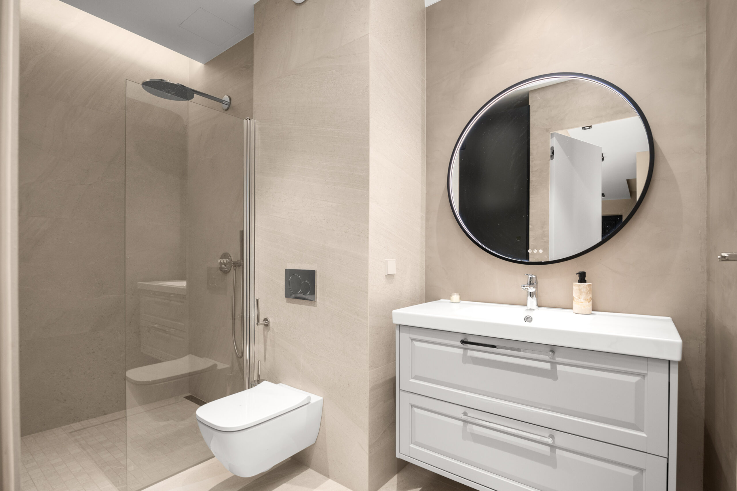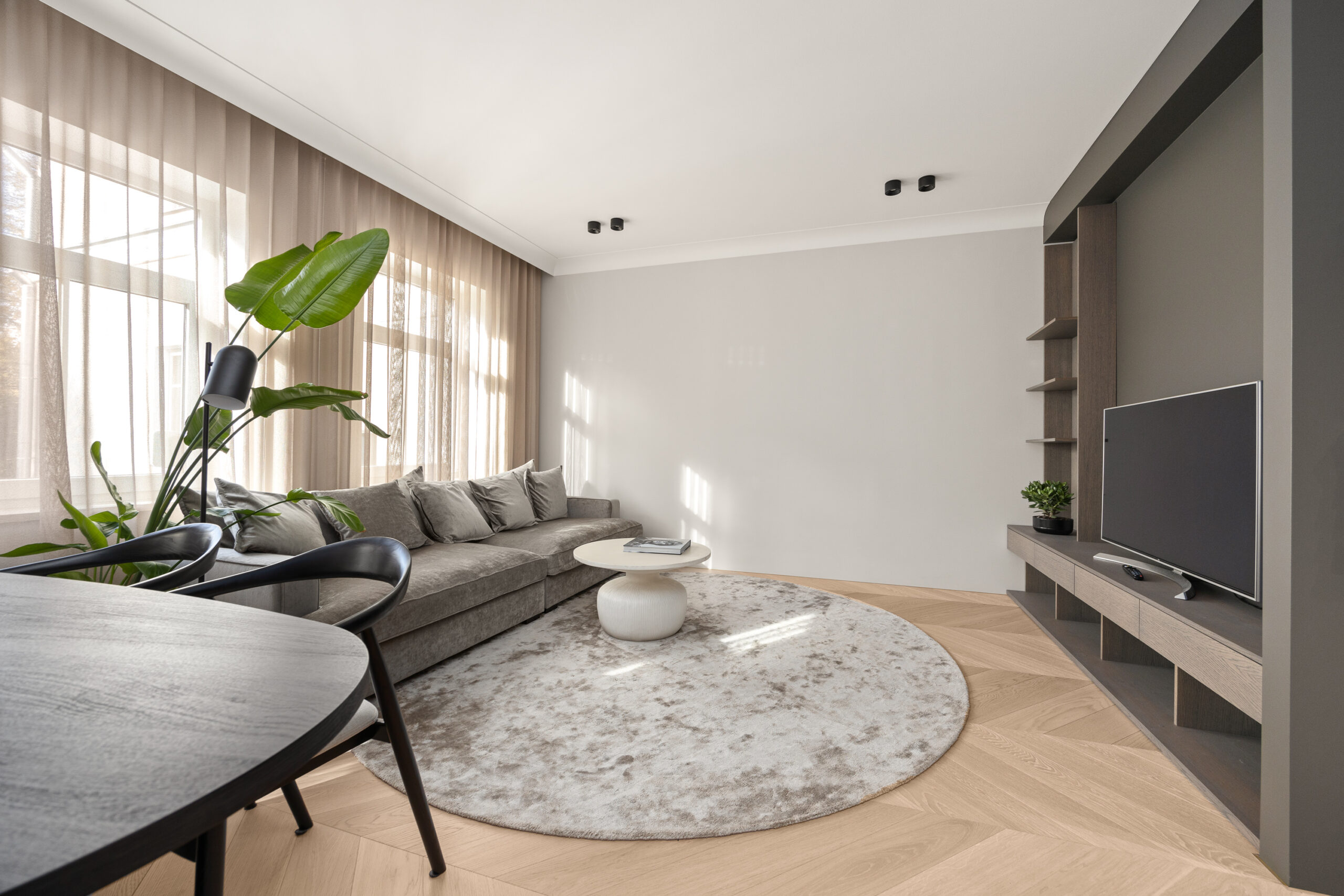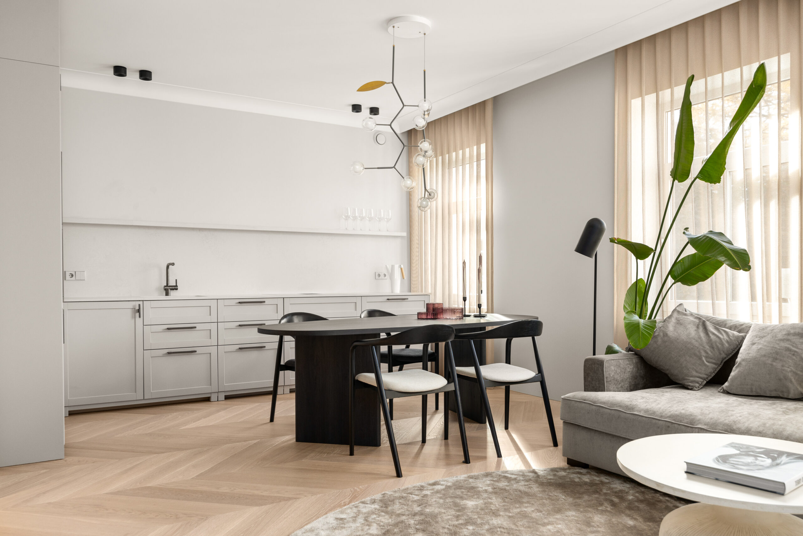 Siseviimistluses läbivalt kasutatud rahulik värvigamma loob korterisse äärmiselt hubase atmosfääri.