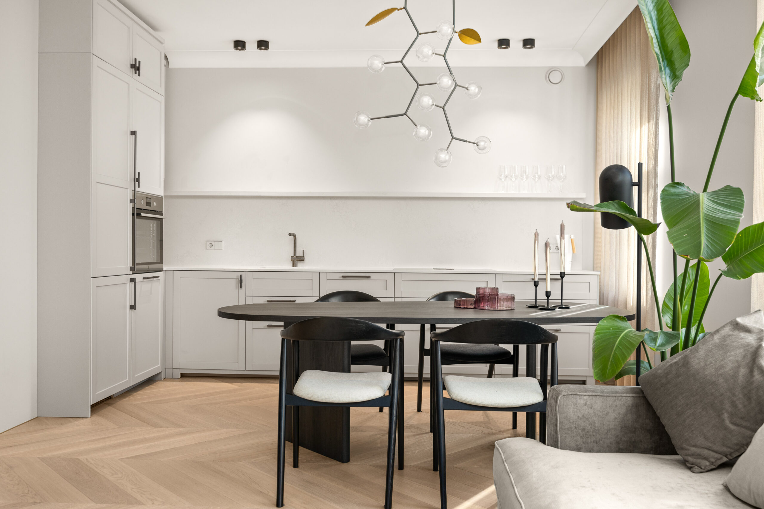 Elutoale, köögile ning söögitoale paneb punkti kasutusmugav mööbel. Esikus ja magamistoas uued eritellimusel valmistatud LED valgustusega garderoobikapid.