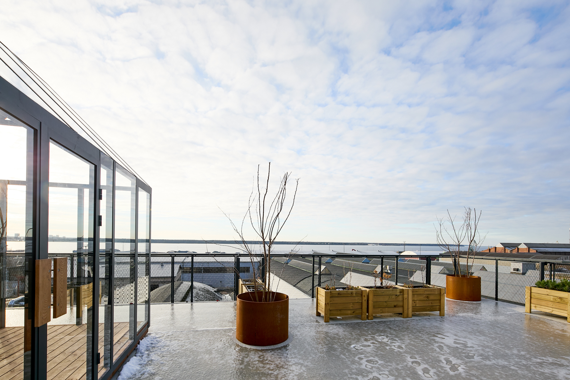 Hoones on mitmeid ühiskasutatavaid ruume – päikeseloojangu poolne katuseterrass ja kasvuhoone, reserveeritav ühisruum katusel, pesupesemise ruum, co-working ala ja palju muud.