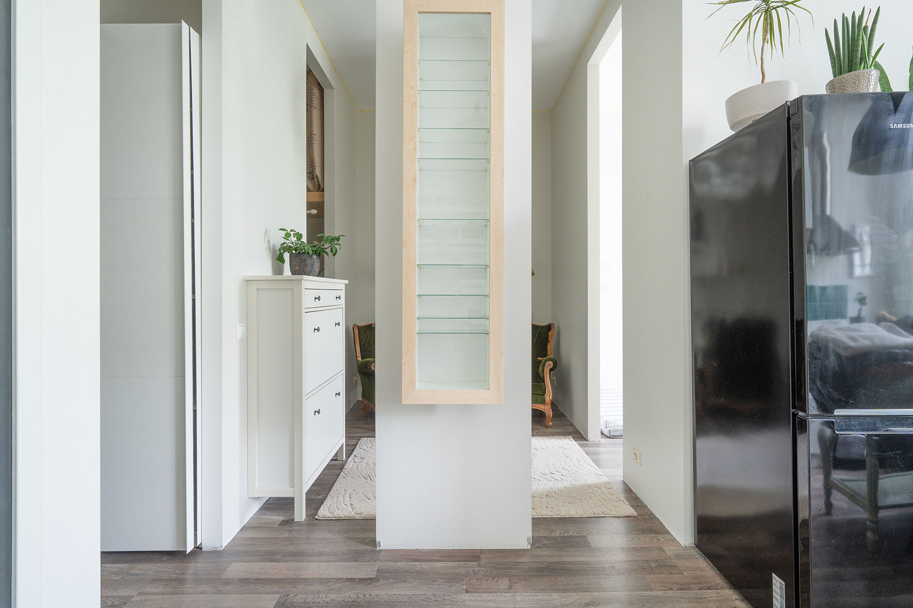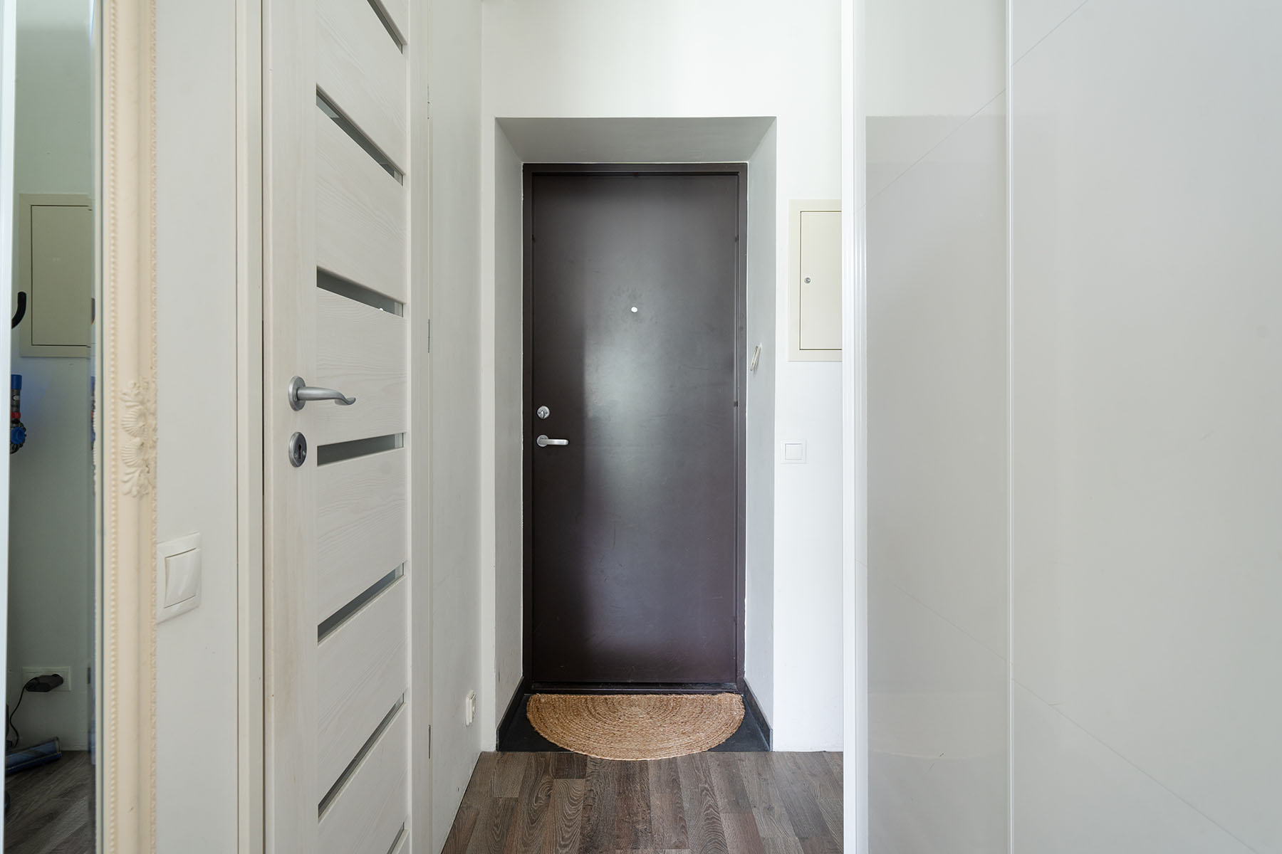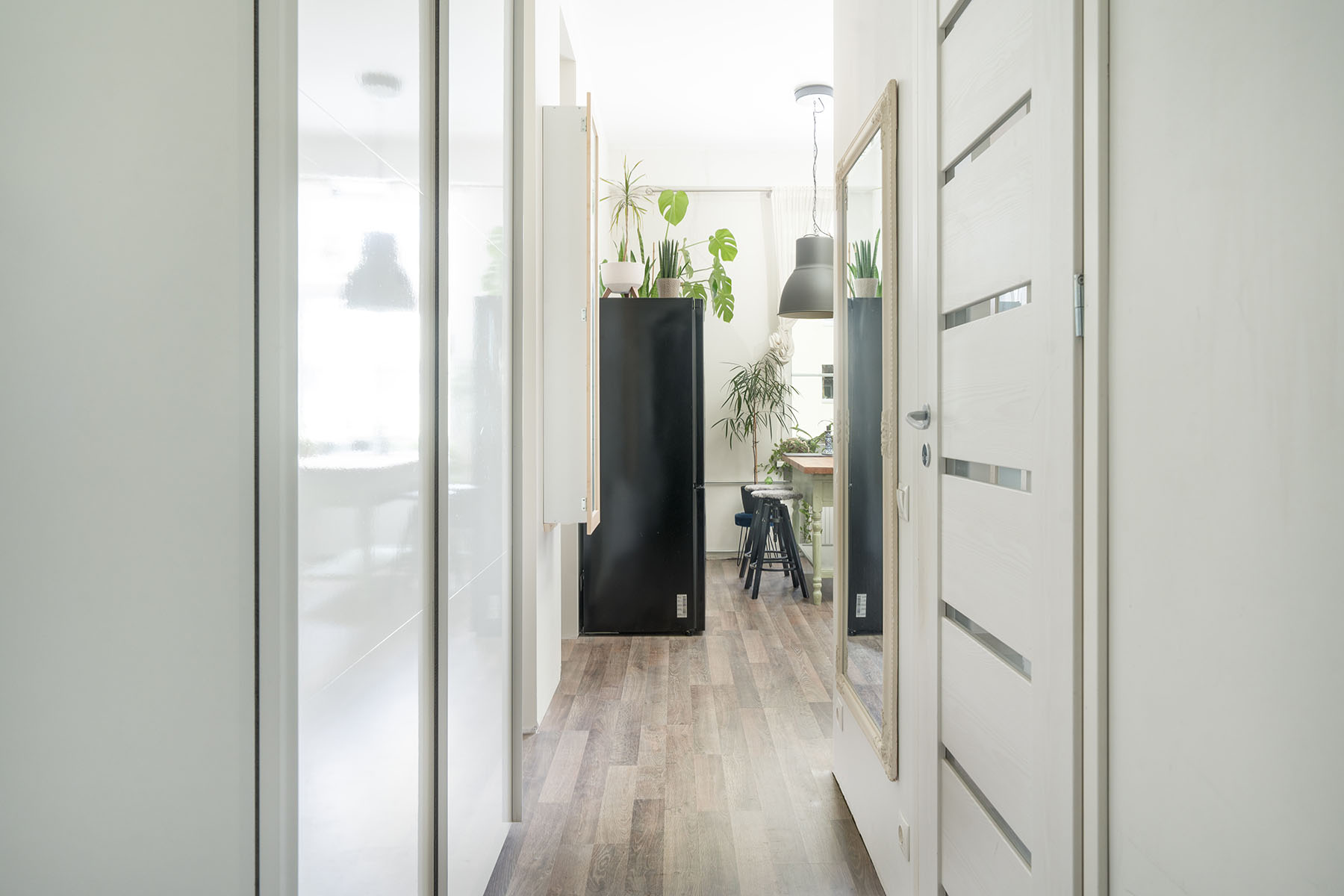 Koridoris on mahukas sisseehitatud kapp riietele.