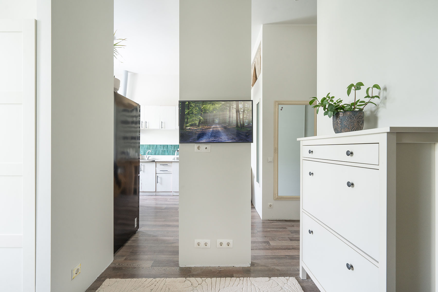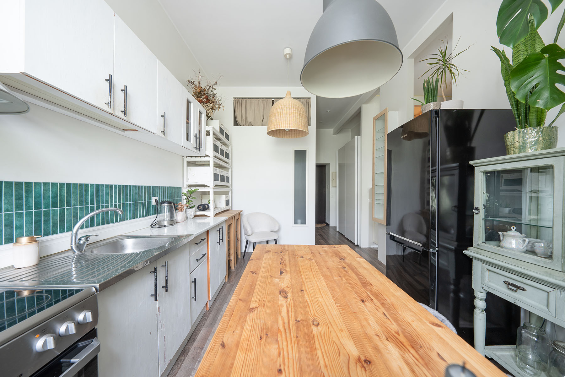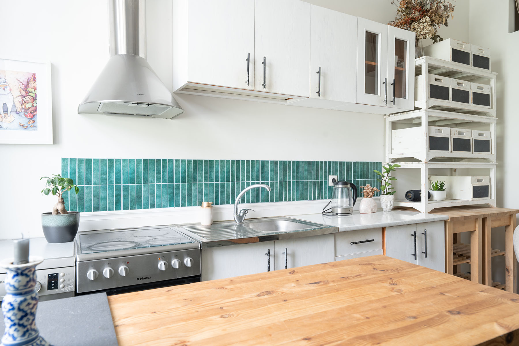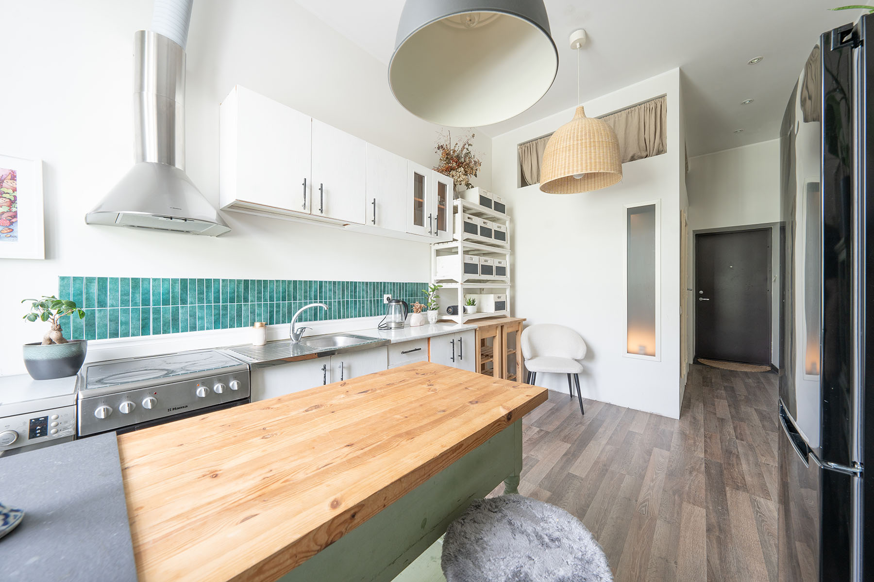 Korteris on olemas eluks vajalik sisustus, valgustid ja tehnika. Funktsionaalsesse köögimööblisse on integreeritud kvaliteetne köögitehnika: Boschi nõudepesumasin, Hansa elektripliit ja ahi, õhupuhasti ning Samsung külmkapp koos sügavkülmikuga. Köögis on rohkelt kapi- ja tööpinda.