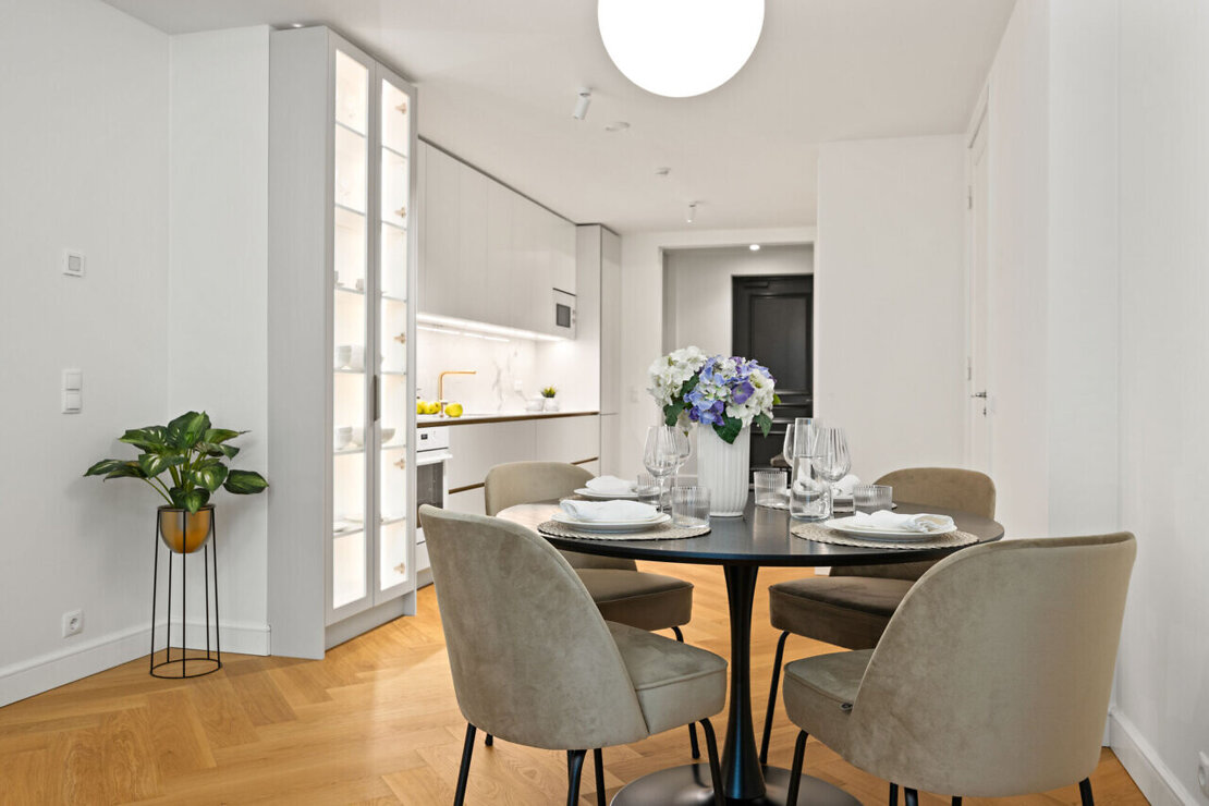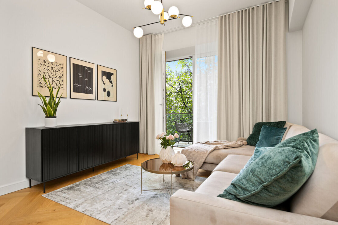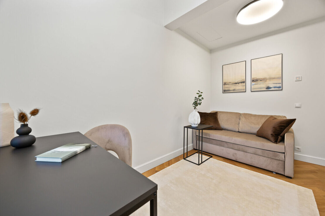 Korter üüritakse täielikult möbleerituna, olemas on kõik eluks vajalik. Kogu korteri sisustus ning viimistlus on valminud koostöös disaineritega ja kasutatud on kõrgkvaliteetseid materjale ning hinnatud mööblibrände.