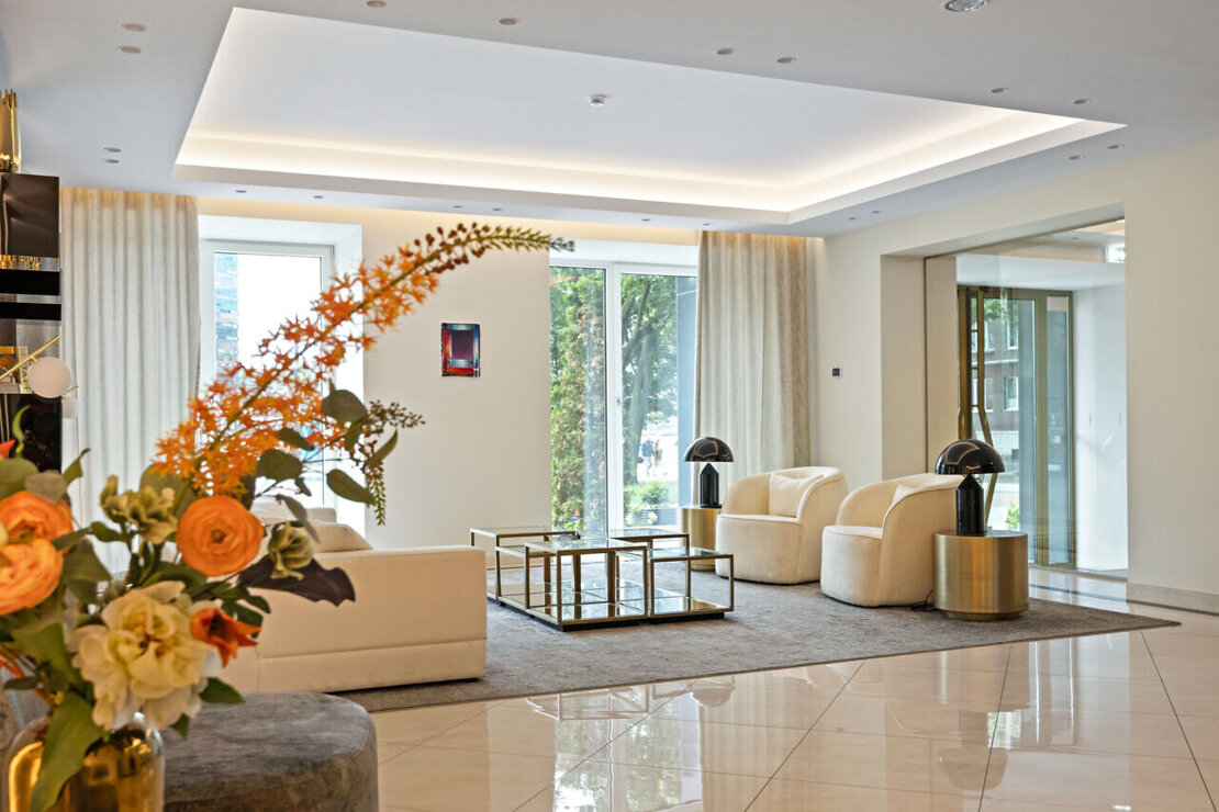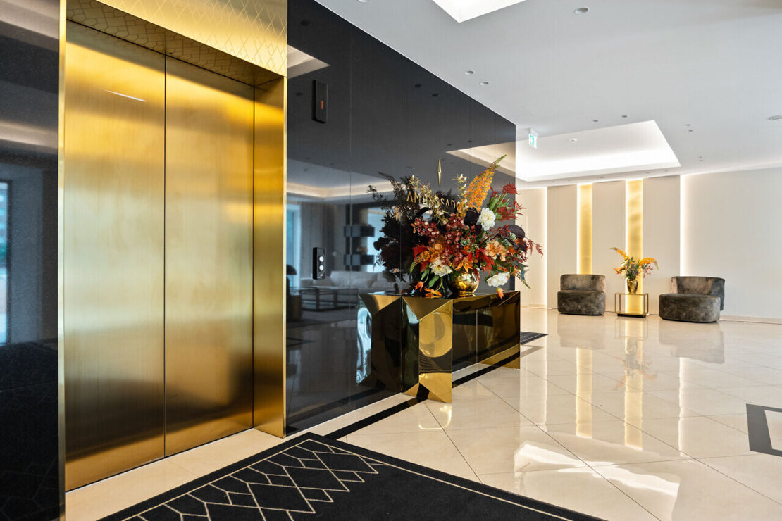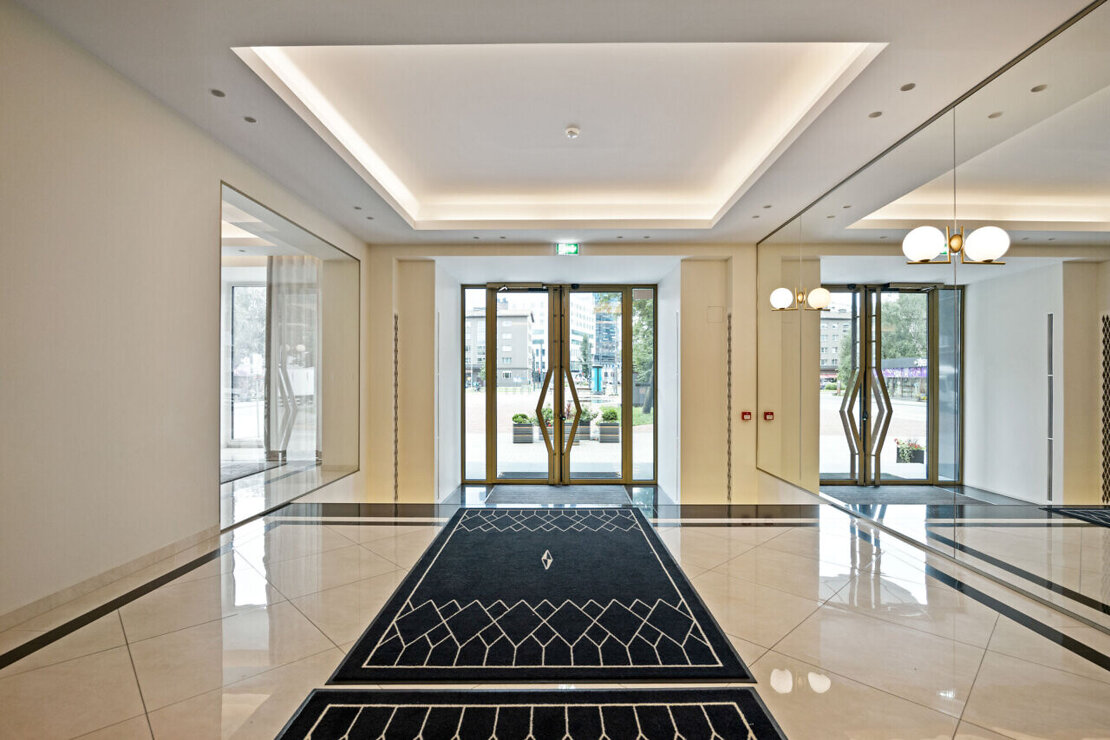 Hoone elanikke ootab koju tulles alati väärikas vastuvõtt. Luksusliku disainiga fuajees on puhkehetkedeks rahulik istumisala koos raamaturiiuliga.