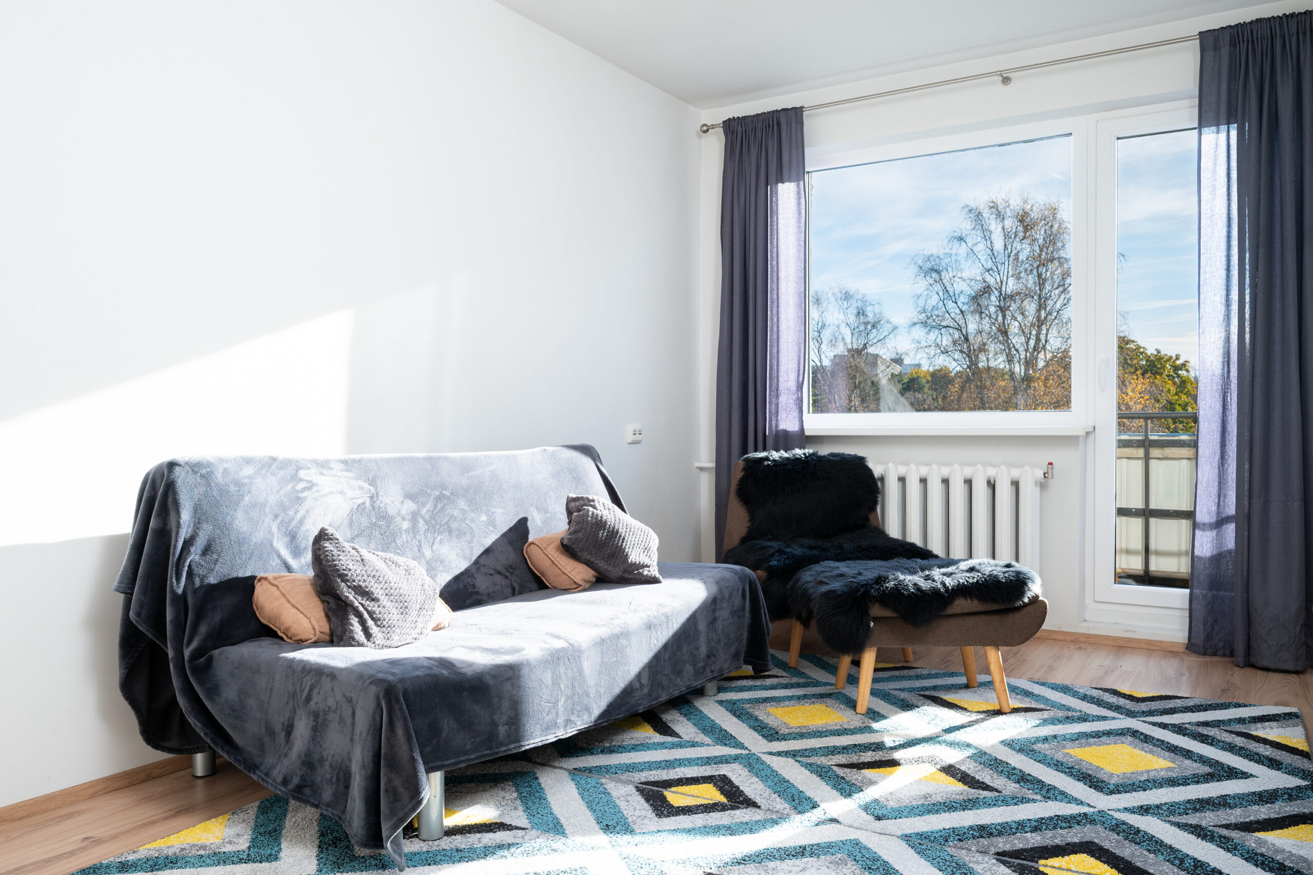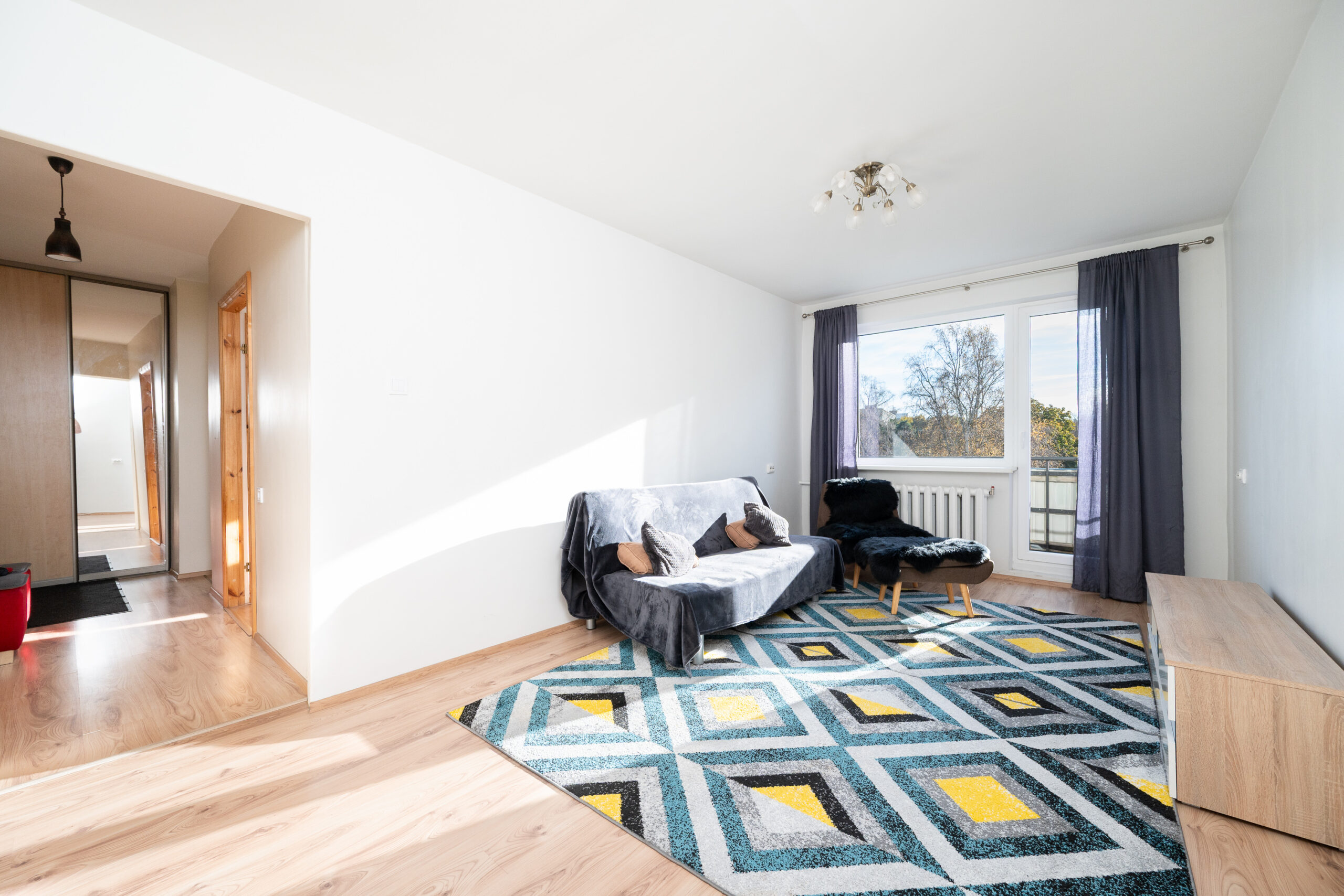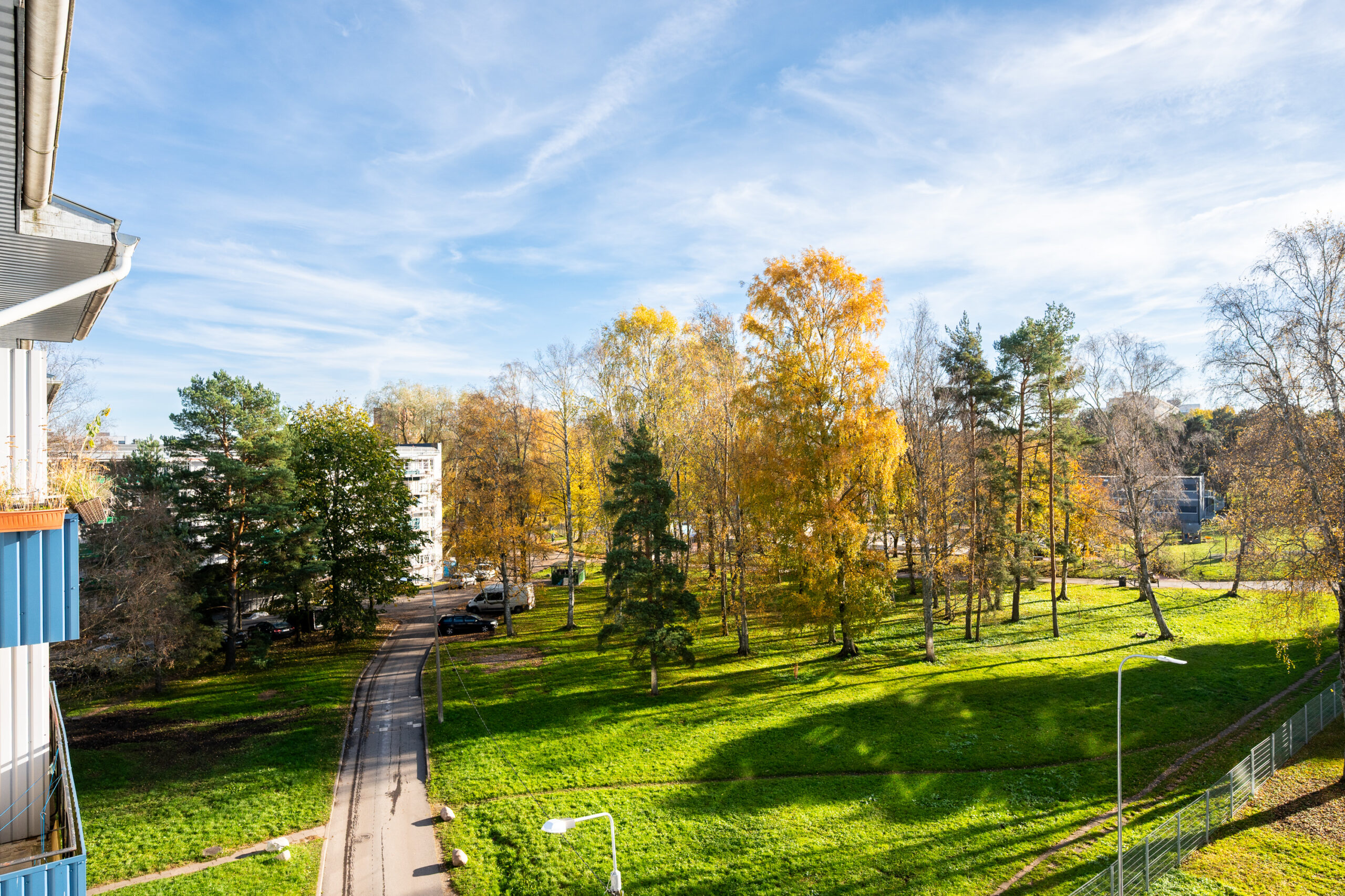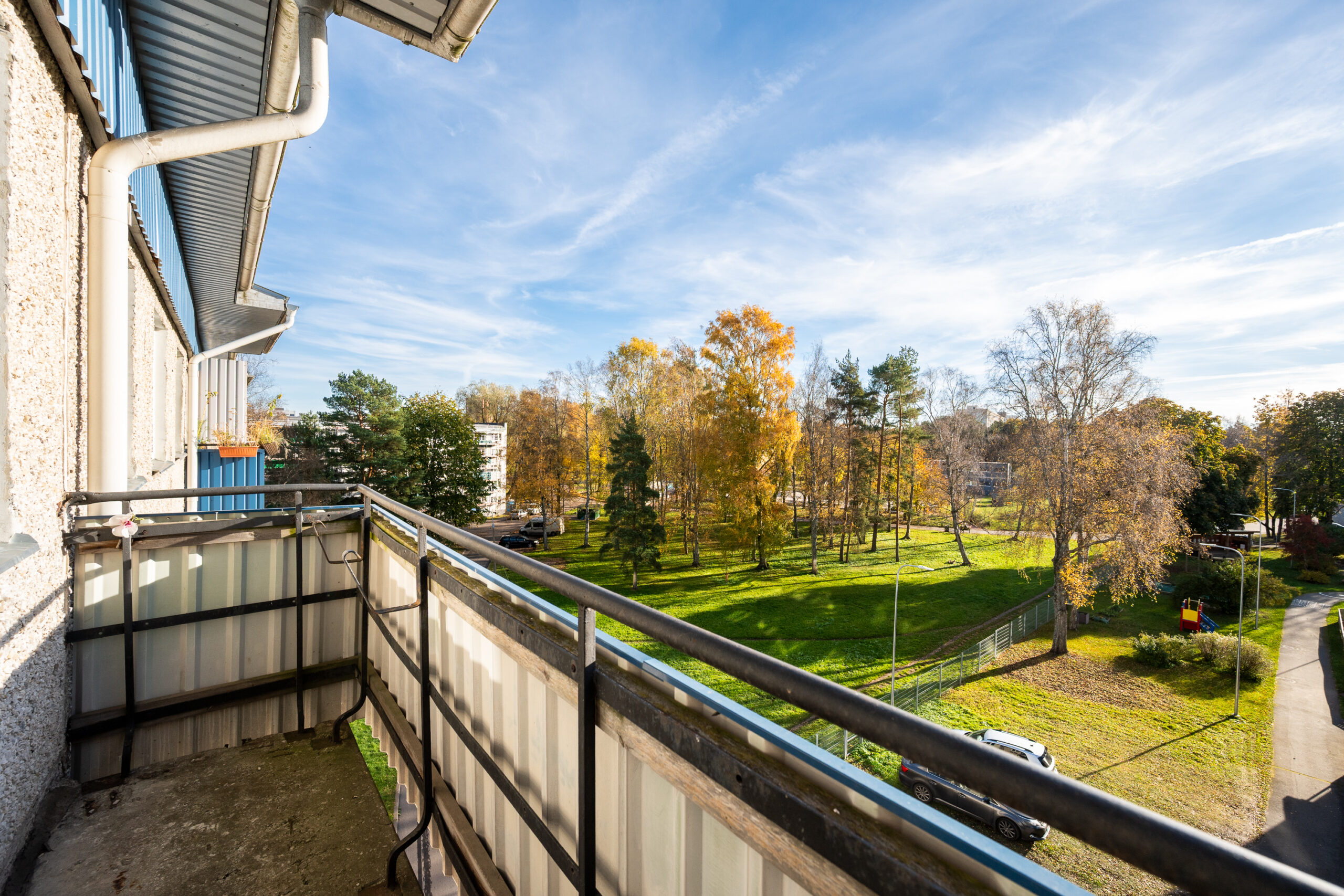 Valgusküllasesse korterisse paistab päevane päike ning rõdult avaneb vaade rohelisele kasepuudega haljastatud alale.