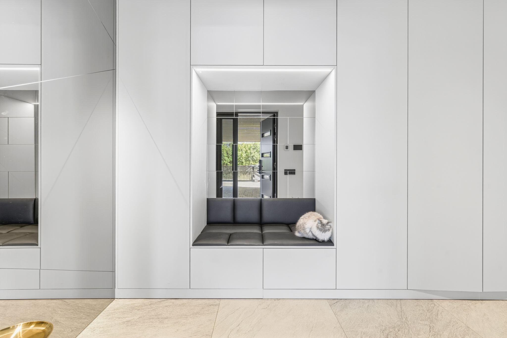 Esikus on terve seina ulatuses integreeritud garderoobikapid.