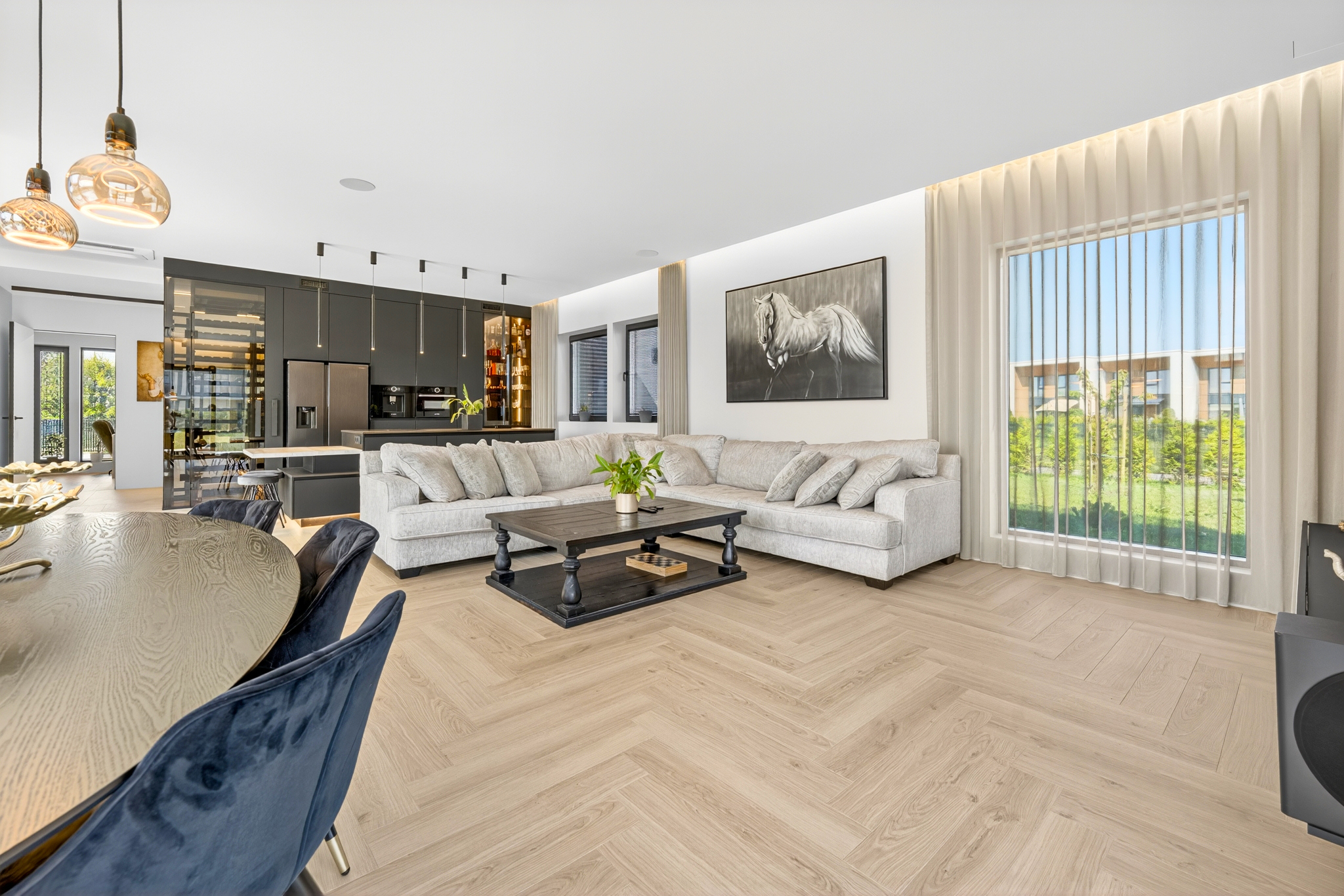 Tegu on kaasaegsete lahendustega, avatud planeeringuga ning valgusküllase koduga, mille interjööri iseloomustavad puhtad jooned, naturaalsed materjalid ning modernne lõppviimistlus. Avarust lisavad maast-laeni aknad. Maja on kujundatud kasutades vaid kõige vastupidavamaid ja kvaliteetsemaid materjale.
