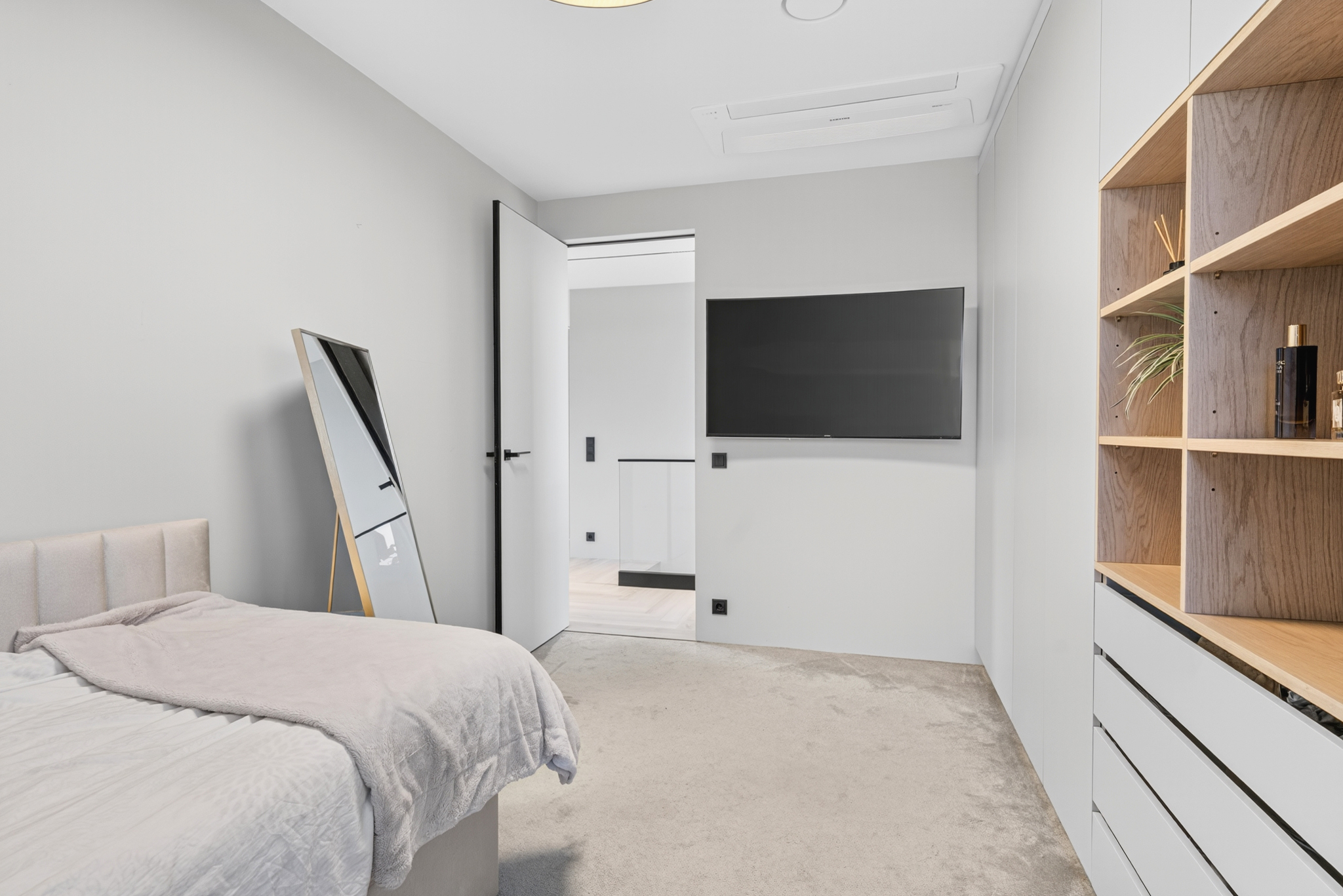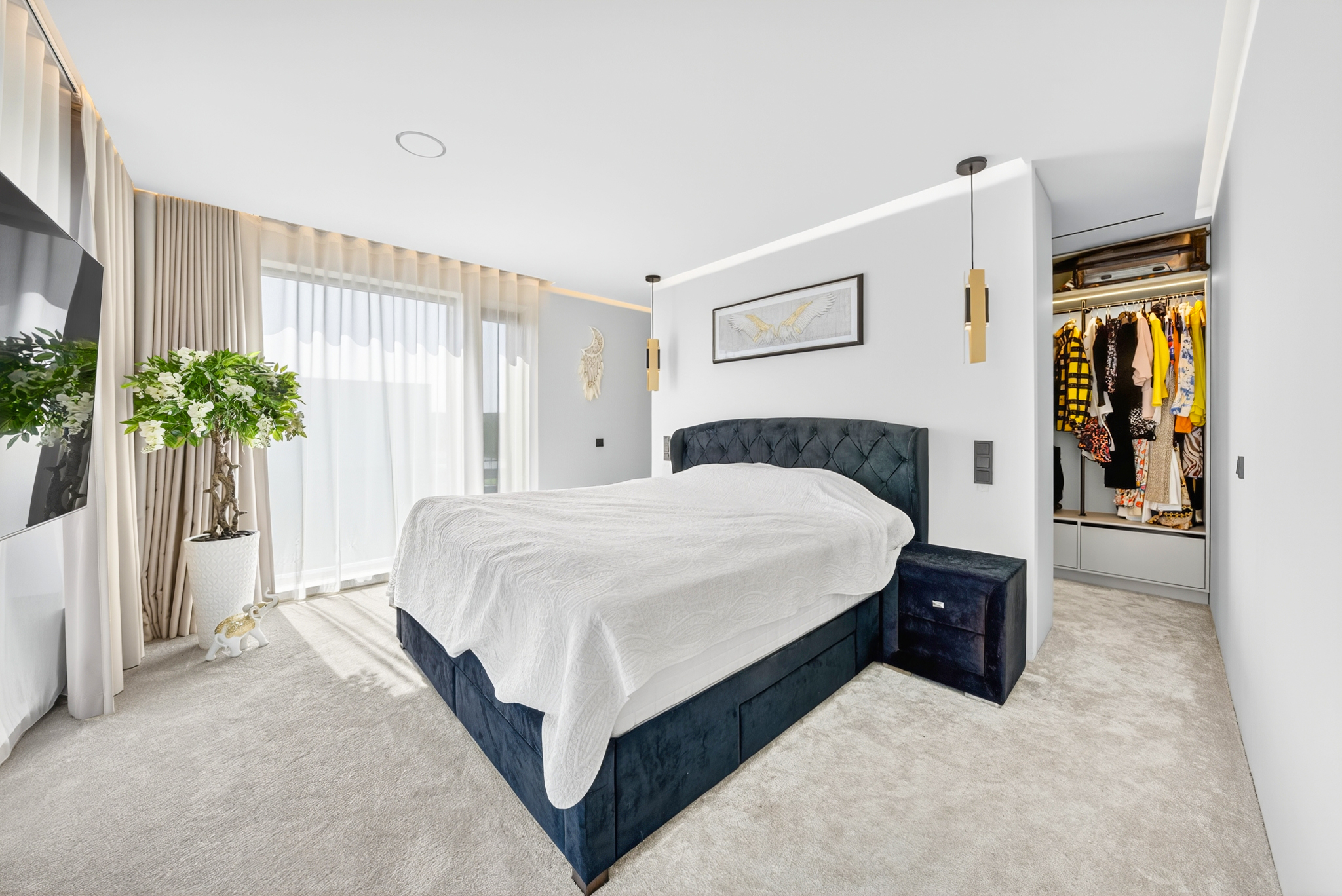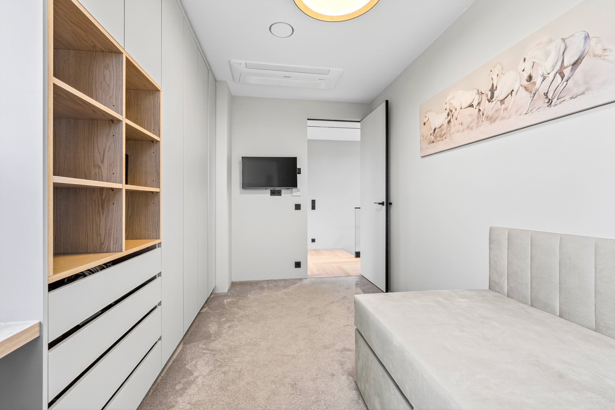 Master magamistuba on koos walk-in garderoobiga ning teistes magamistubades on integreeritud garderoobikapid. Igas magamistoas on Samsung teler.