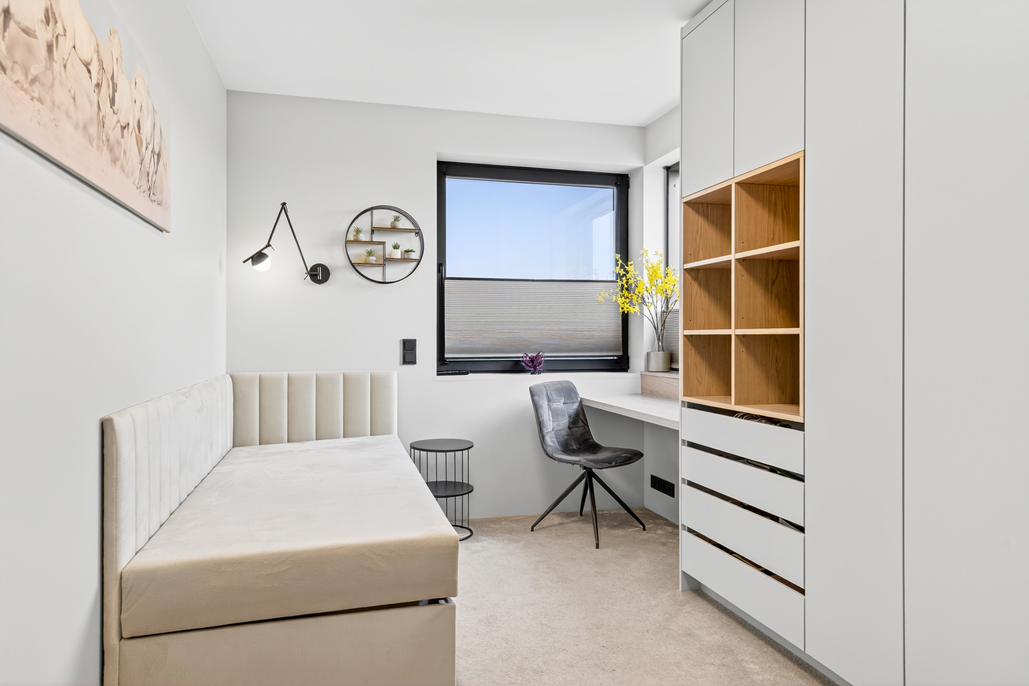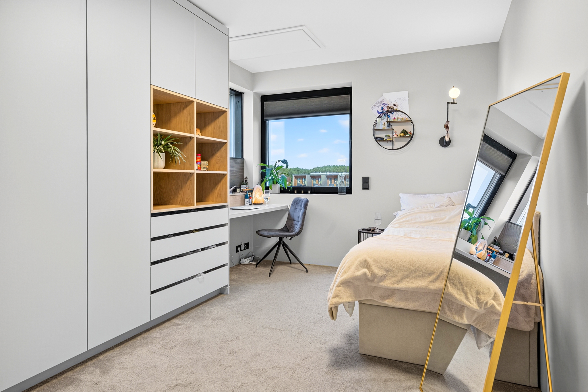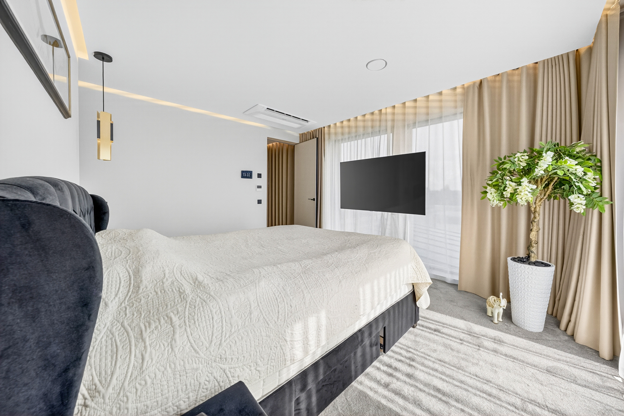 Master magamistuba on koos walk-in garderoobiga ning teistes magamistubades on integreeritud garderoobikapid. Igas magamistoas on Samsung teler.