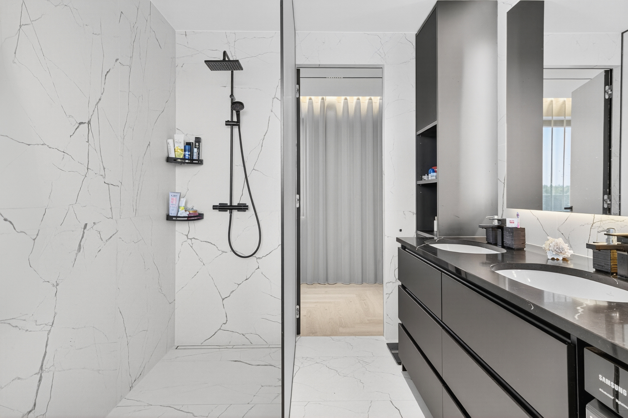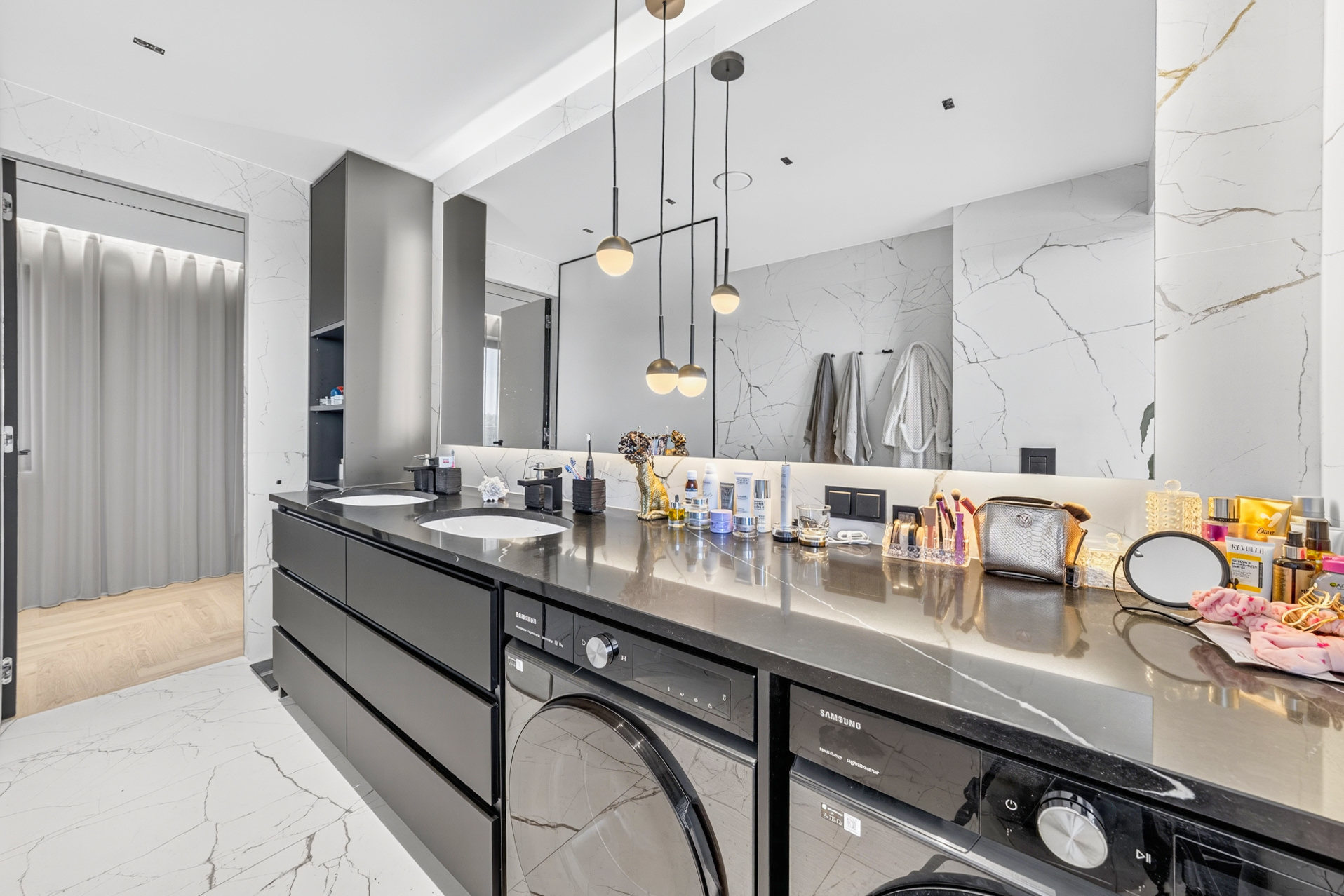Vannitoas on kasutatud Hansgrohe ning Villeroy & Boch sanitaartehnikat ja lisaks vannitoamööblile on olemas ka Samsung pesumasin ning kuivati.