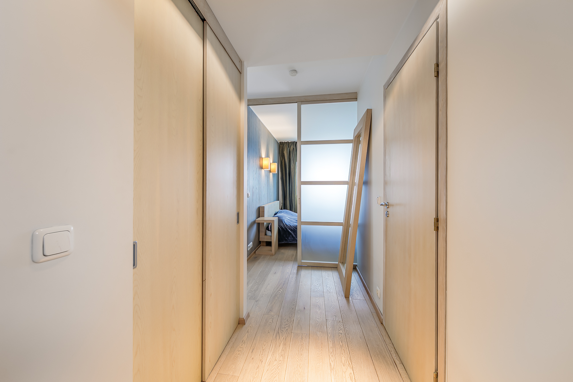 Esikusse ja magamistuppa on integreeritud mahukad garderoobikapid.