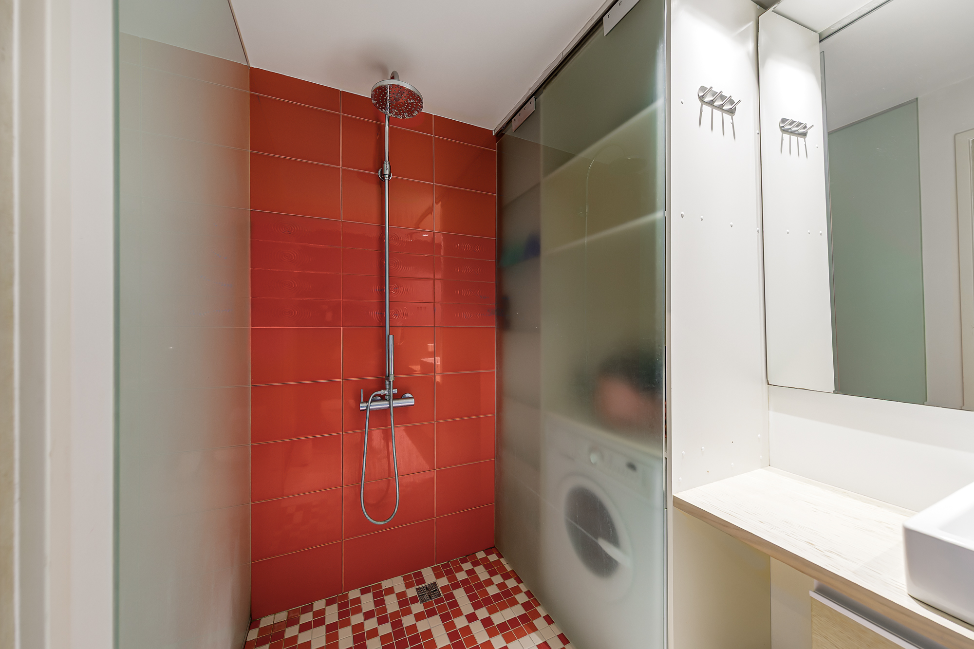 Funktsionaalsesse köögimööblisse on integreeritud kvaliteetne köögitehnika (Whirlpool nõudepesumasin, Schott ceran elektripliit ja toiduahi, Whirlpool külmkapp koos sügavkülmikuga ning AEG õhupuhasti). Vannitoas olemas Electrolux pesumasin.