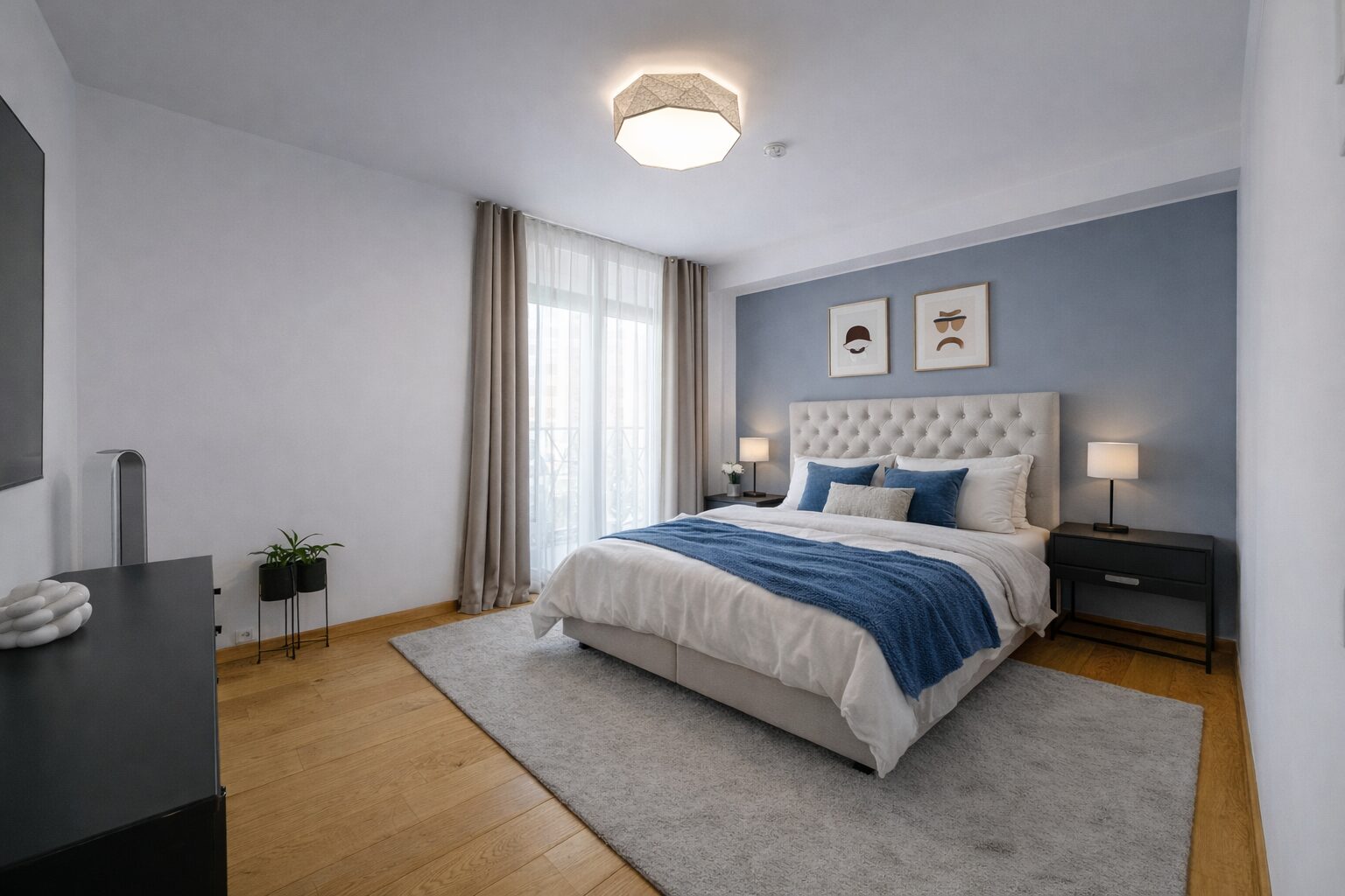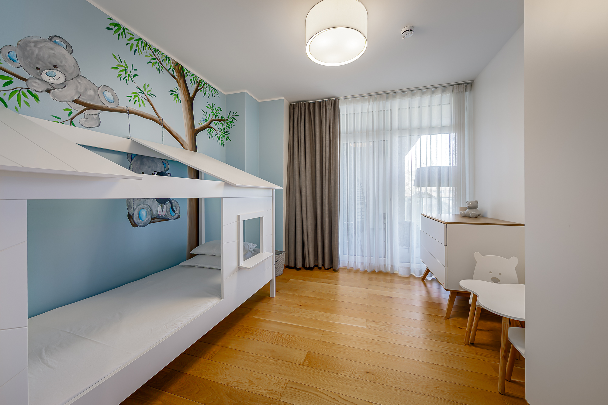 Magamistoas on suur voodi ja samuti 65-tolline televiisor, teine magamistuba on sisustatud lastetoana.