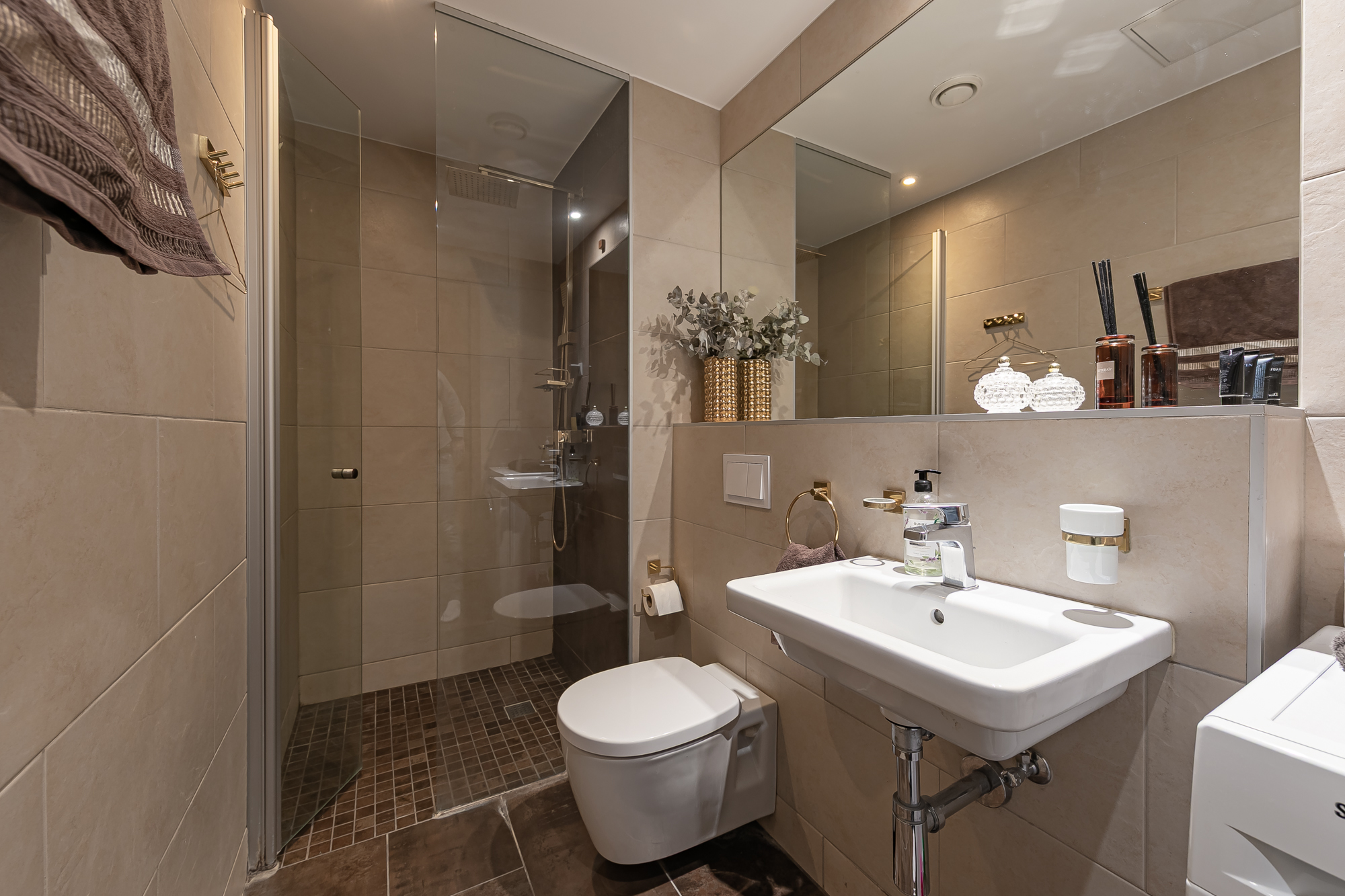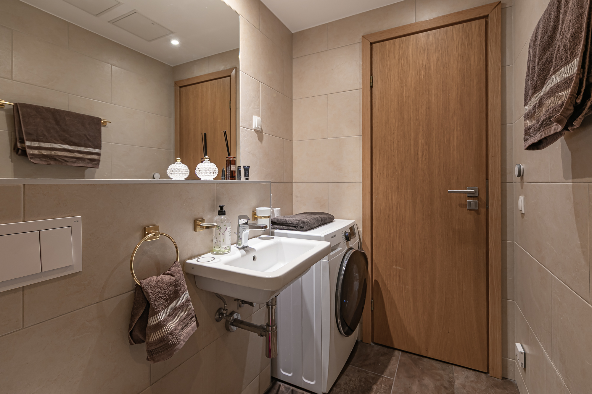 Duširuumis on lisaks sanitaartehnikale ja vannitoamööblile olemas ka pesumasin-kuivati.