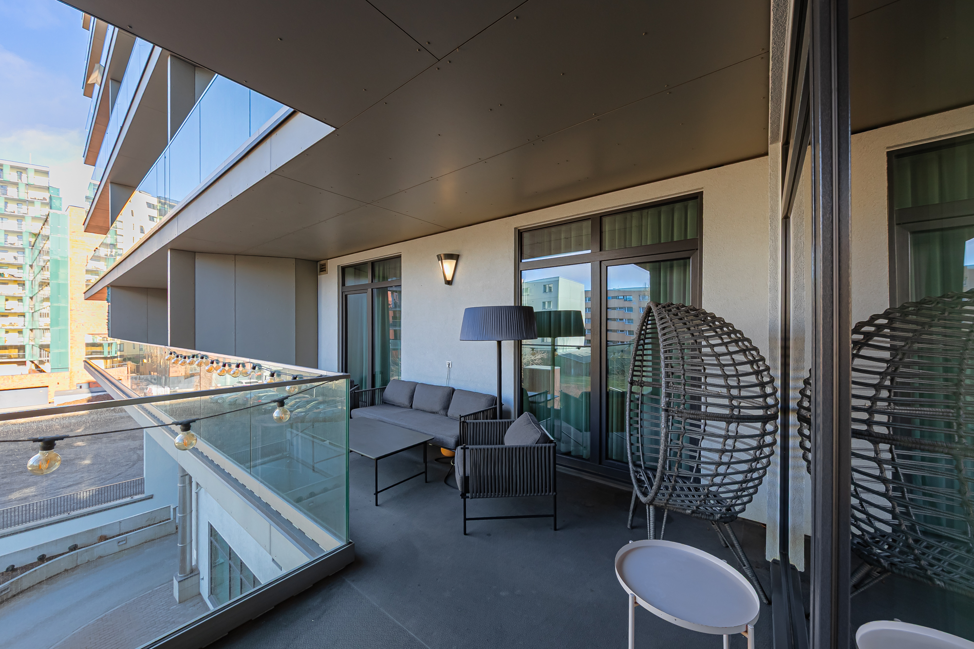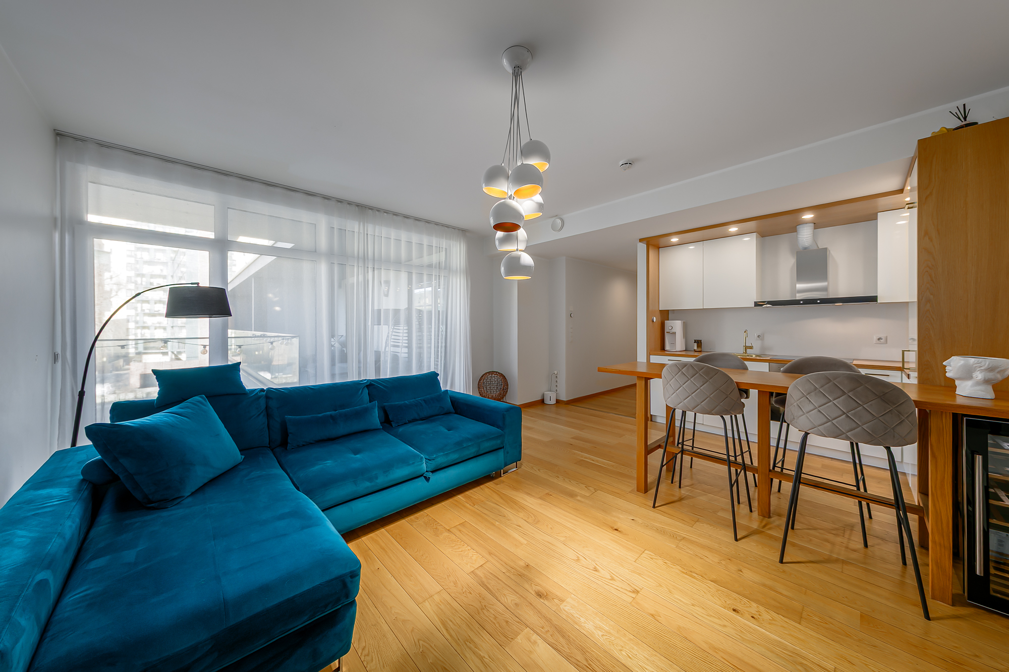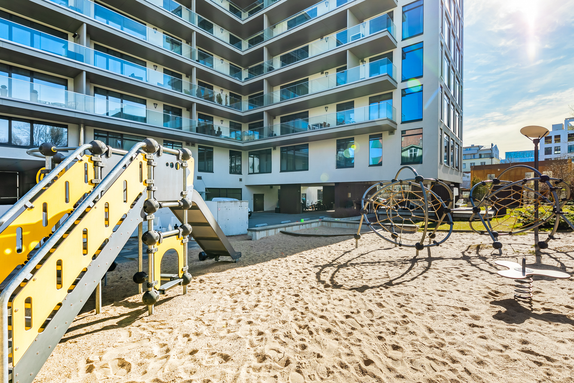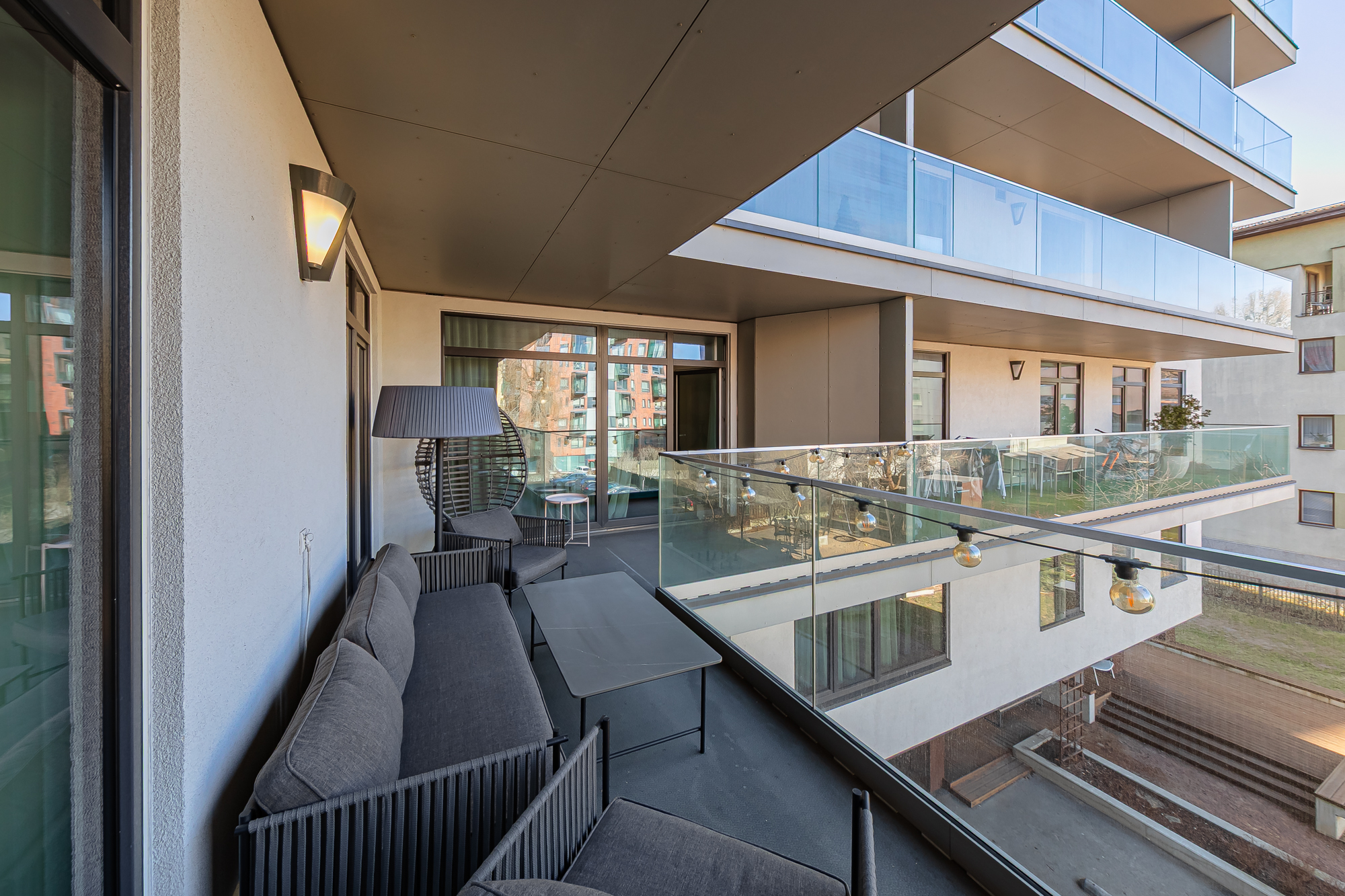 Korter on kaasaegsete lahendustega, avara planeeringuga ning väga valgusküllane. Aknad avanevad vaikse sisehoovi poole, kus paiknevad laste mänguväljak ja privaatne puhkeala, pakkudes rahulikku elukeskkonda kesklinnas.