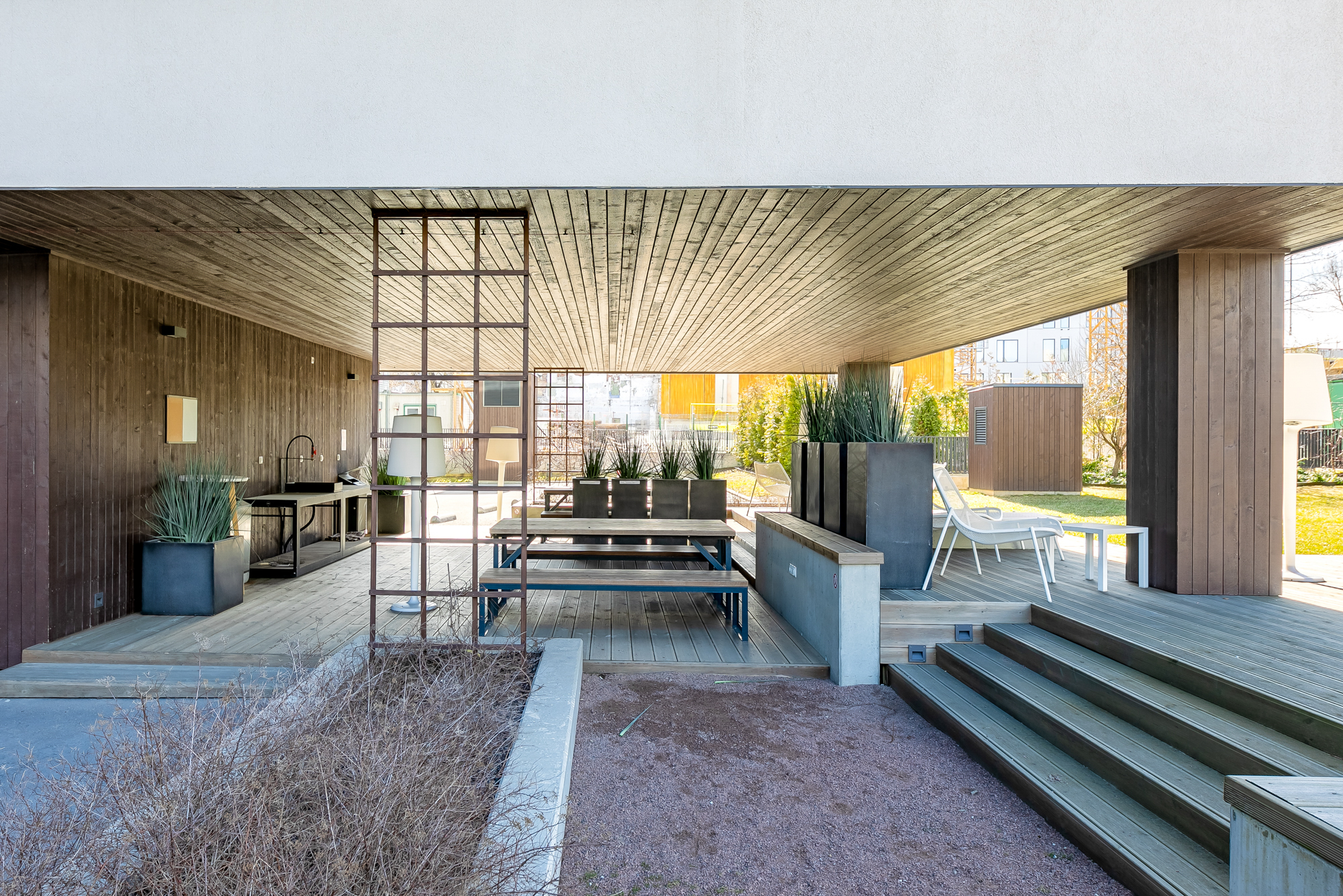 Maja üheks suureks väärtuseks on kinnine ja hooldatud sisehoov, kus asuvad laste mänguväljakud, suur suveköök-grilliala ning kaunis haljastus omanäoliste kultuurtaimedega.