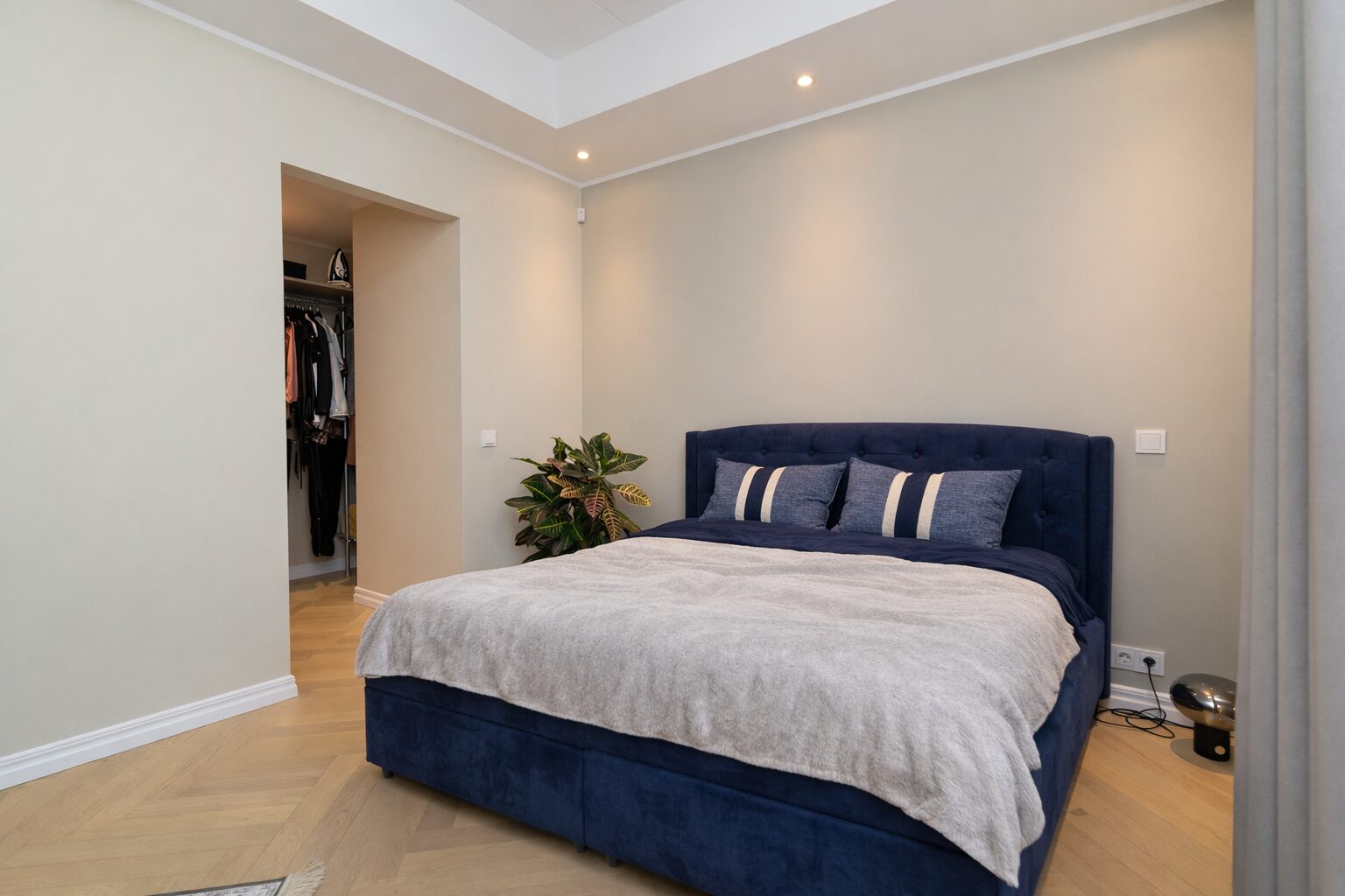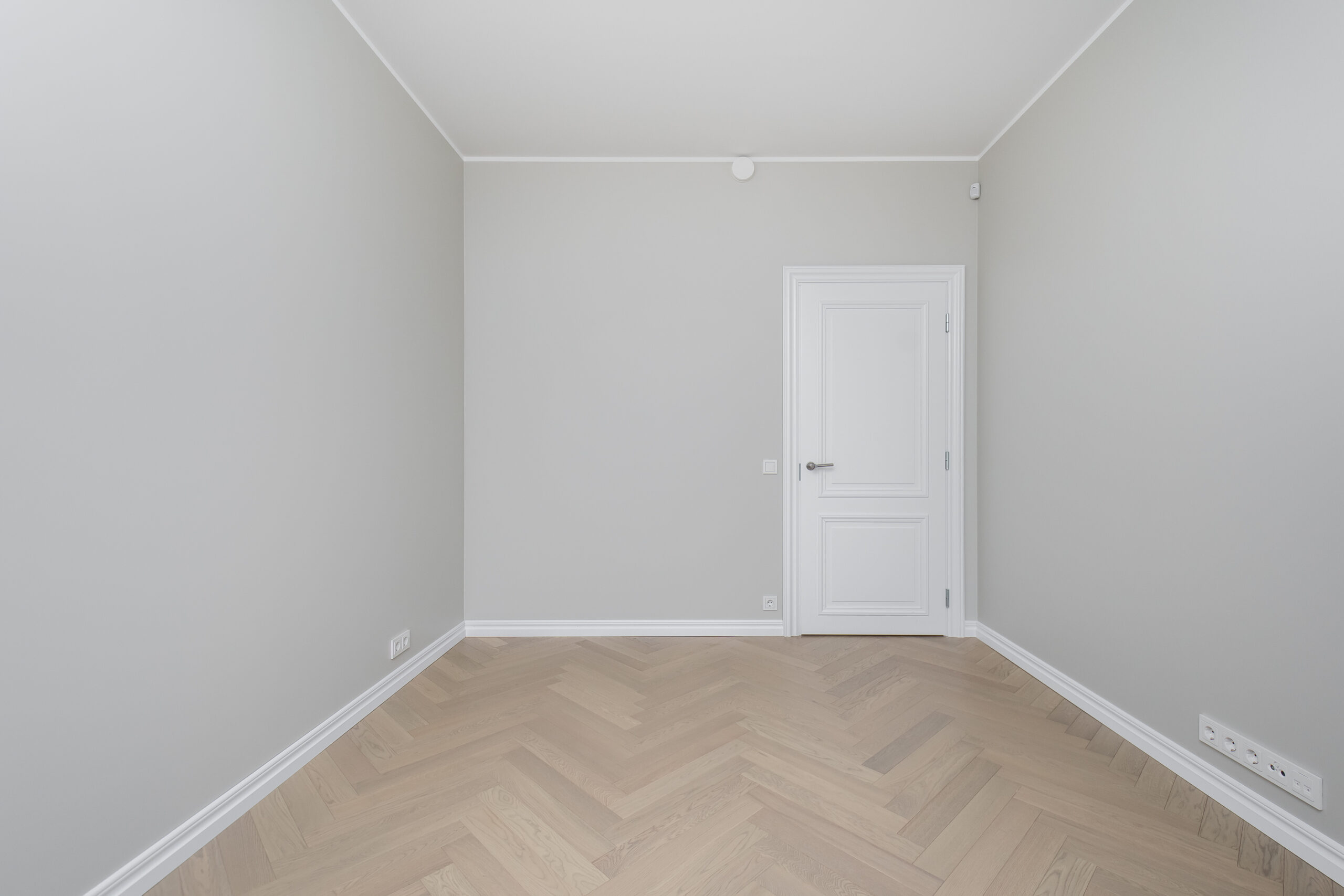Põrandatel on naturaalne kalasaba-parkett, vannitoa põrandat ning seinu katavad keraamilised plaadid.