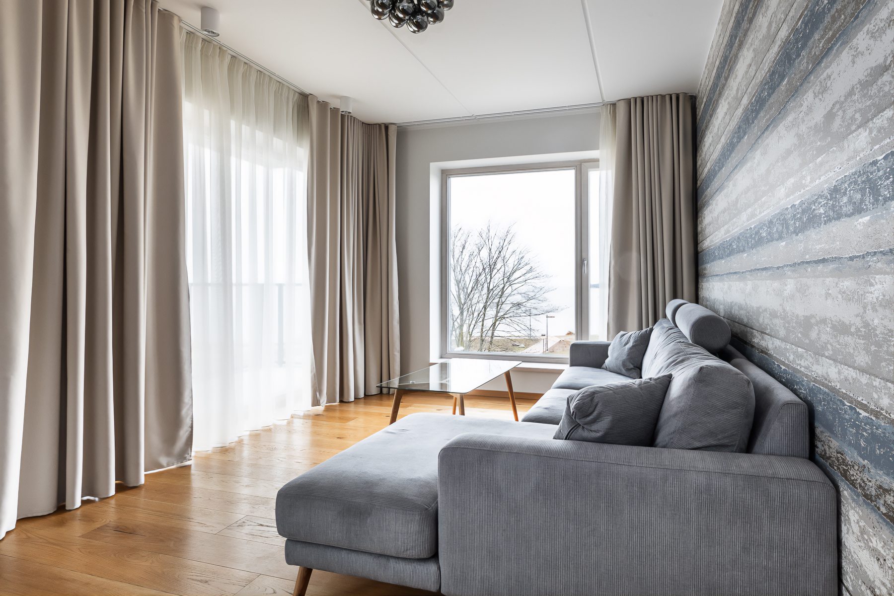 Siseviimistluses läbivalt kasutatud rahulik värvigamma loob korterisse äärmiselt hubase atmosfääri.