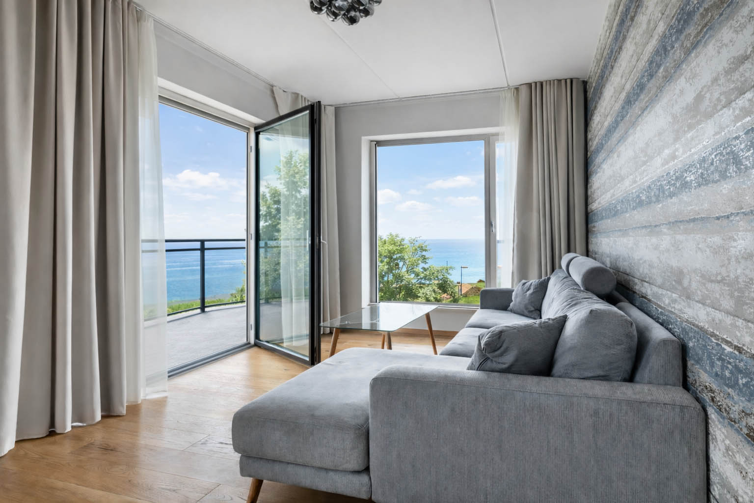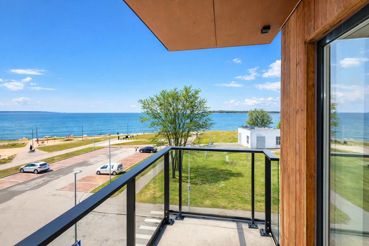 3. korrusel asuv 76,1 m² suurune korter on uueväärses seisukorras. Elamispind on kaasaegsete lahendustega, avatud planeeringuga ja valgusküllane. Elutoa ja magamistoa akendest on otsevaade merele.