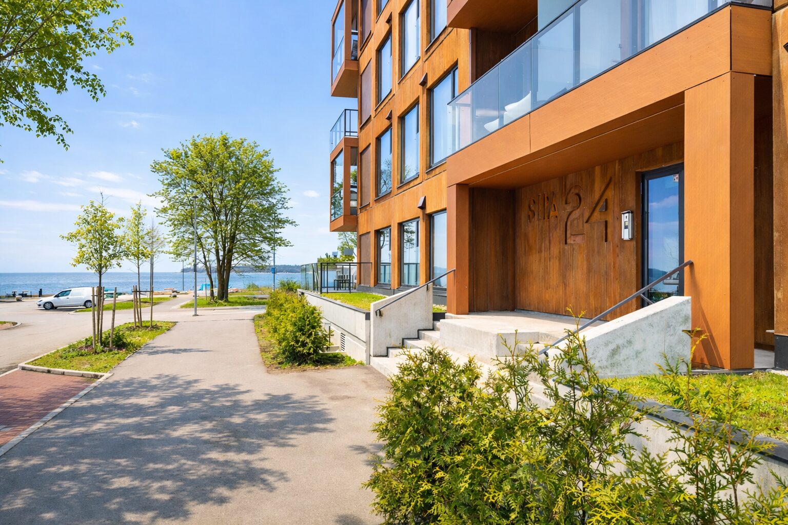 Maja kõrvalt jooksval rannapromenaadil asuvad erinevad atraktsioonid, nagu näiteks mänguväljakud, puhkealad, tulevikus ka võrk- ja korvpalliväljakud ja treeningalad.