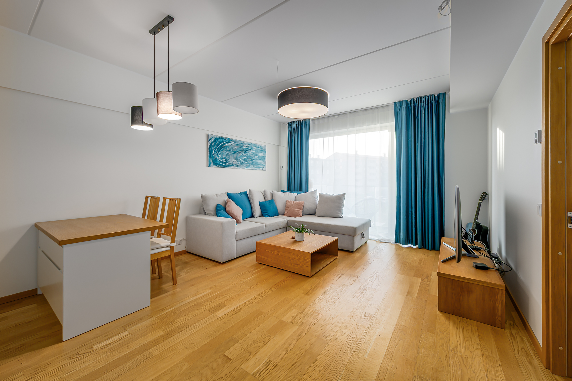Korteris on olemas eluks vajalik sisustus, valgustid ja tehnika.