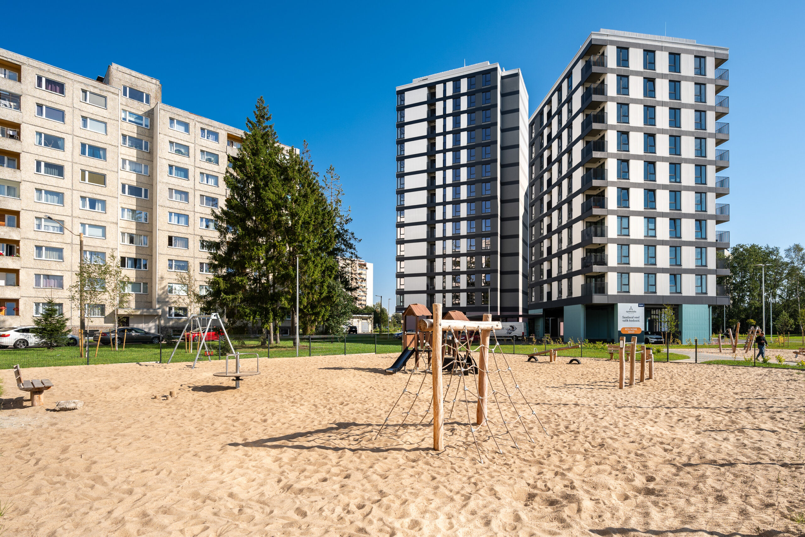 Maja kõrval asub kaks laste mänguväljakut nii pere väiksematele kui suurematele, et tegevust ja rõõmu jätkuks igas vanuses. Hoovialal olev korvpalliplats annab võimaluse lastel kodu lähedal turvaliselt koos sõprade või perega aega veeta. Rohelised puhkealad täiskasvanutele on ideaalne koht, kus naabritega maailma asju arutada või sõõm värsket õhku hingata.
