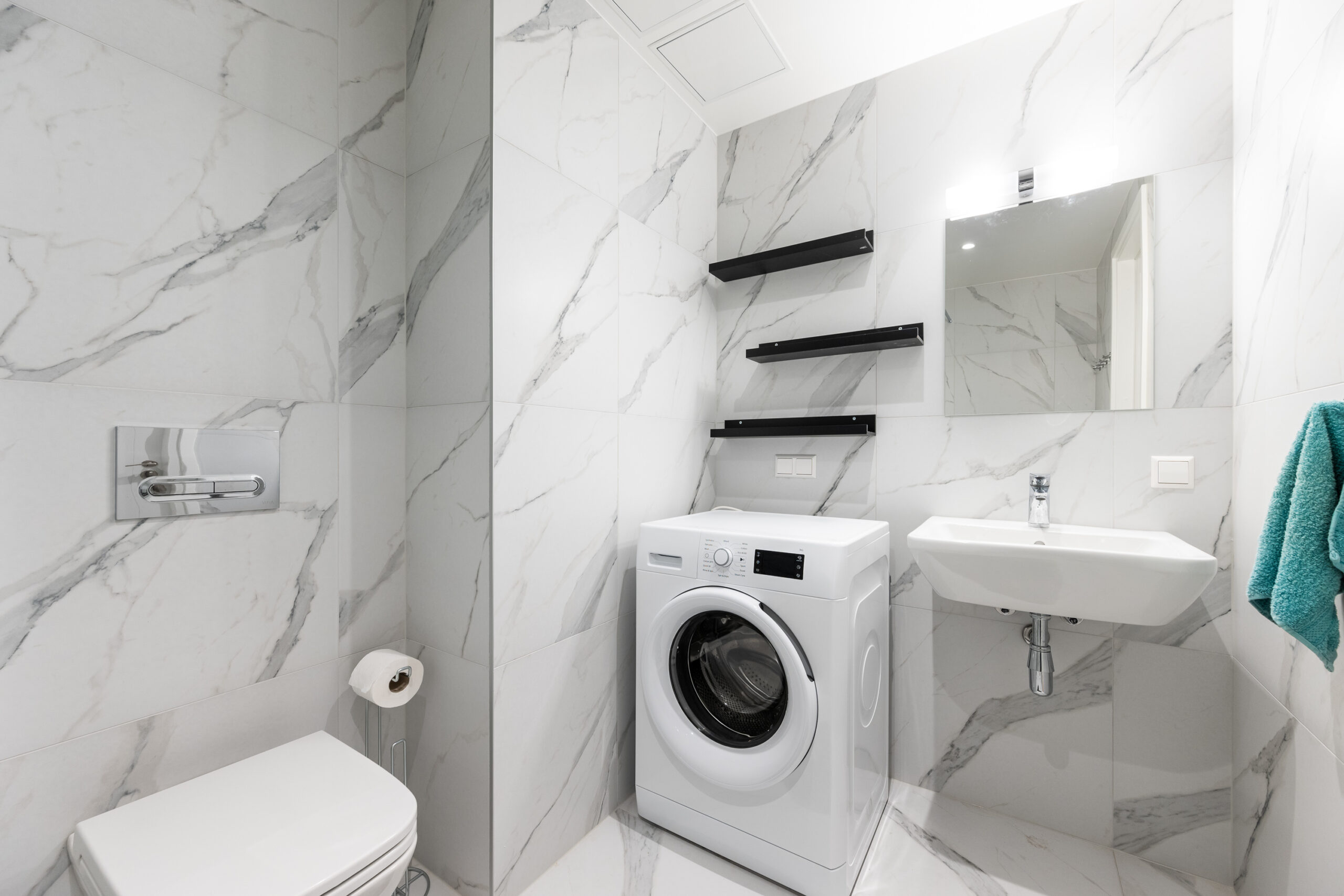Põrandatel on vastupidav tammeparkett, vannitoa põrandad ja seinad on kaetud keraamiliste plaatidega.