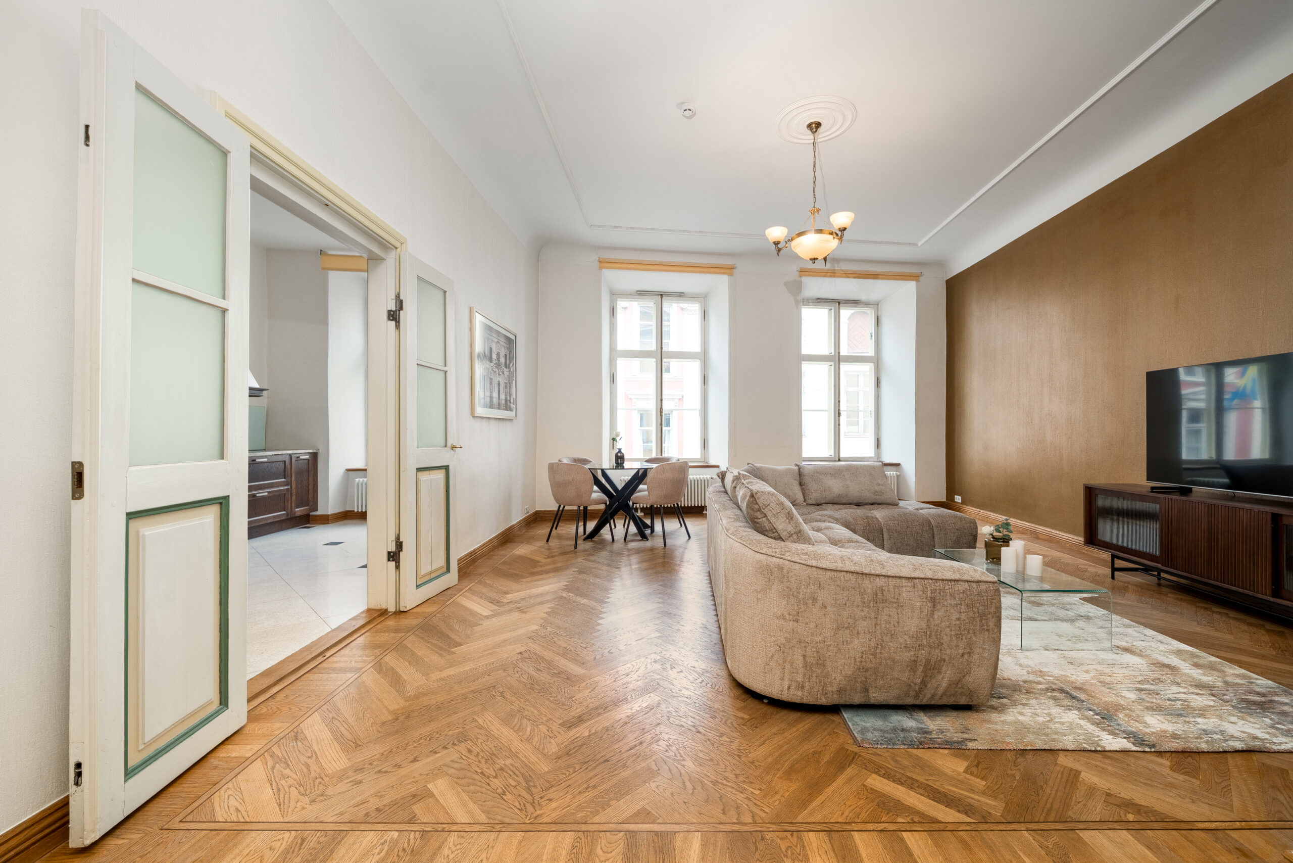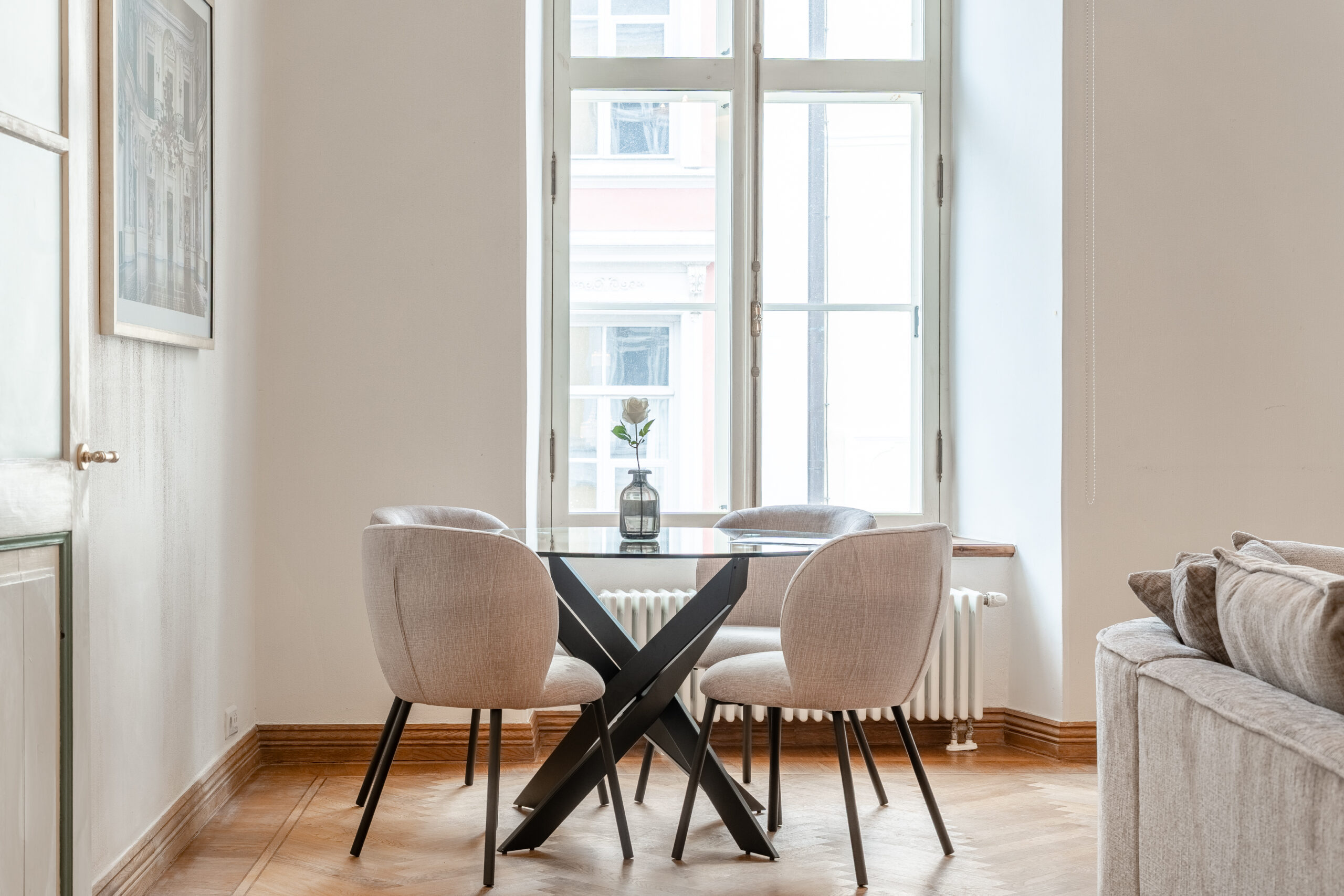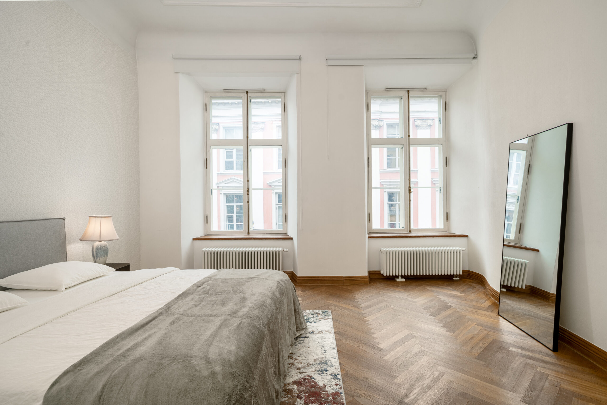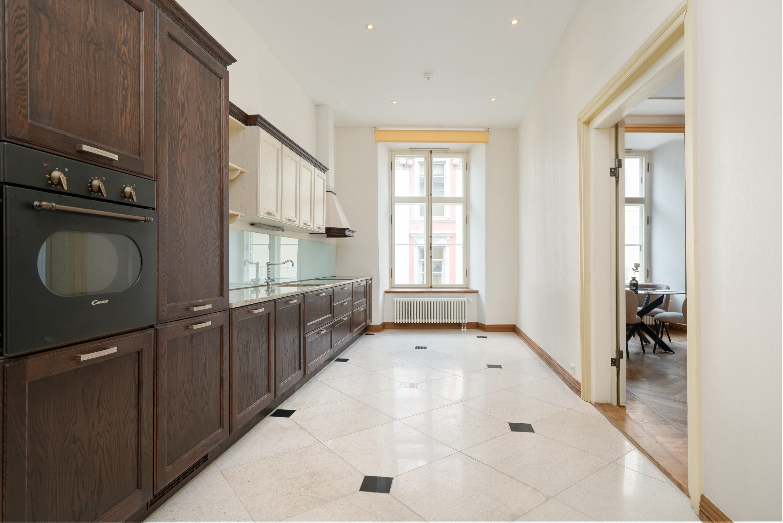 Nostalgilist hõngu lisab Vanalinna korterile iseloomulikud kõrged laed ning topelt täispuidust aknad puidust aknalaudadega.