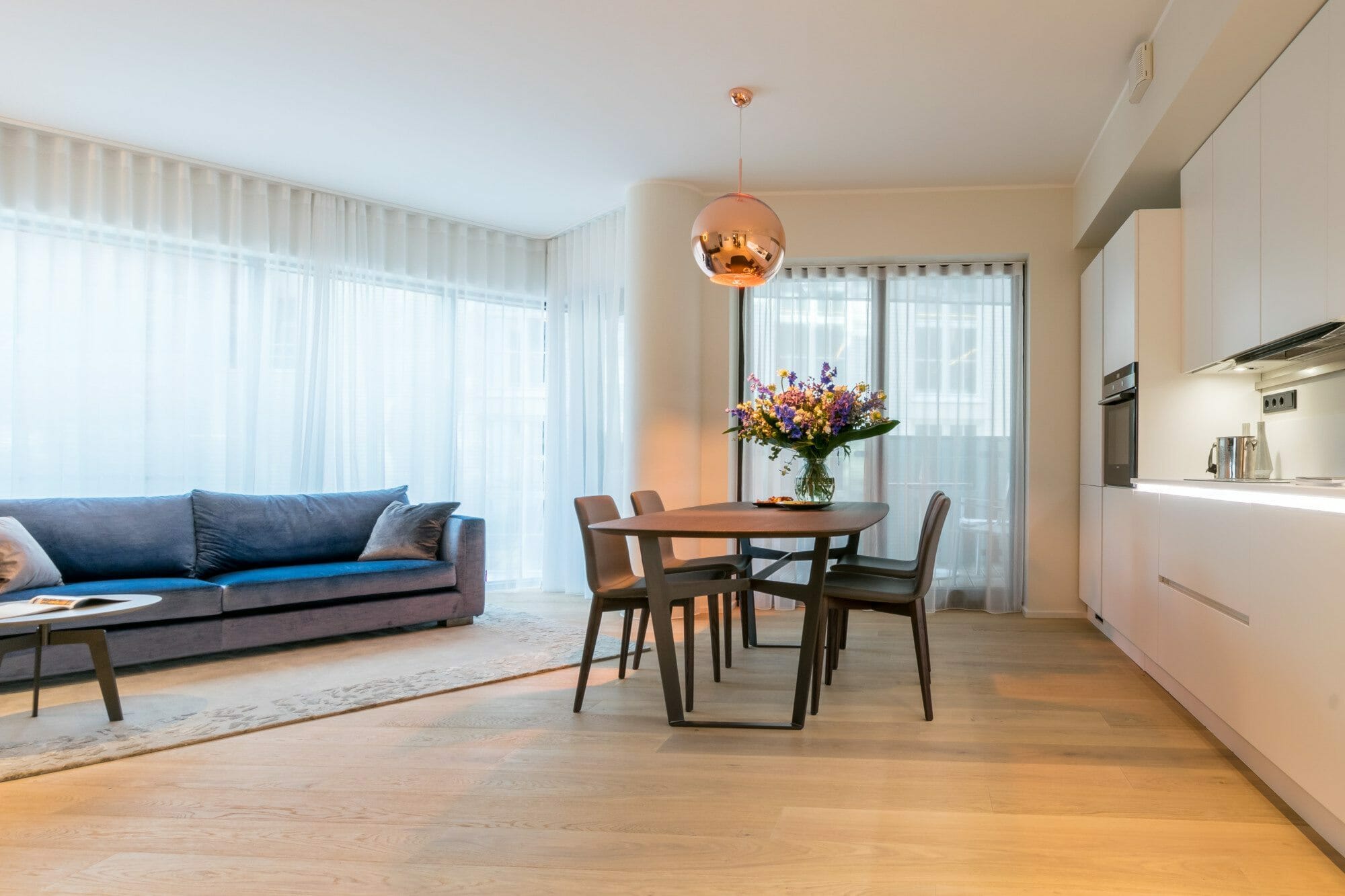 Uue väljaku ja klassikalise korstna vaatega 86,7 m² suuruses korteris on olemas eluks vajalik mööbel, valgustid ja tehnika.