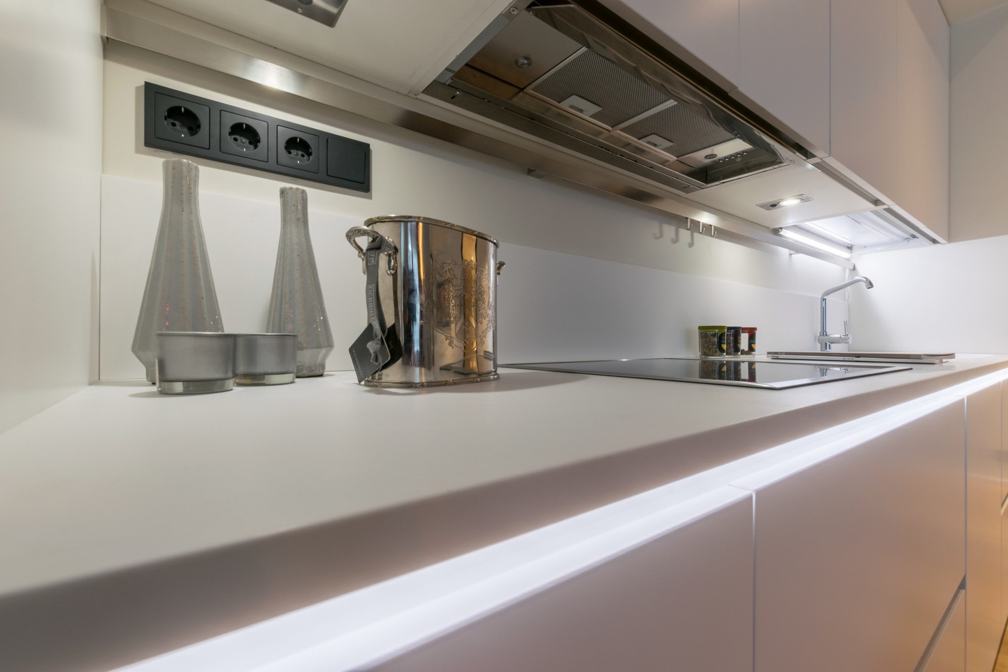 Funktsionaalsesse LED-valgustusega Itaalia köögimööblisse on integreeritud kvaliteetne köögitehnika: induktsioonpliit, ahi, õhupuhasti ning külmkapp koos sügavkülmikuga. Esikus ja magamistubades on mahukad integreeritud garderoobikapid.